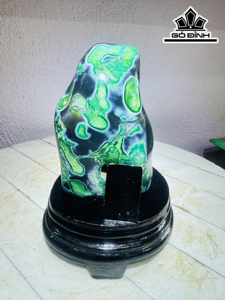 Tác Phẩm Đá Mã Não Xanh Vân Cao 18 Ngang 10 (cm) 1,4kg
