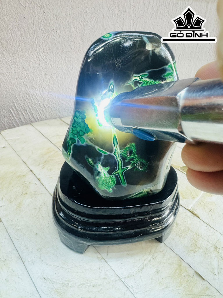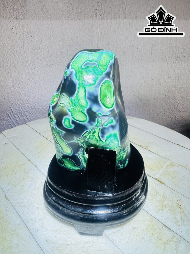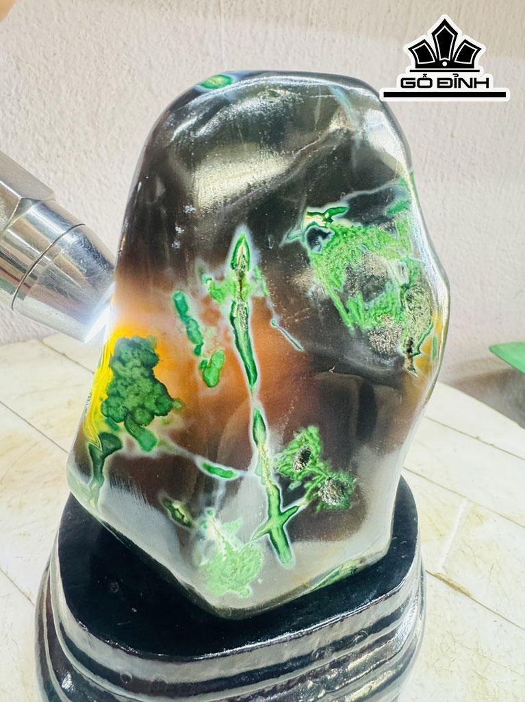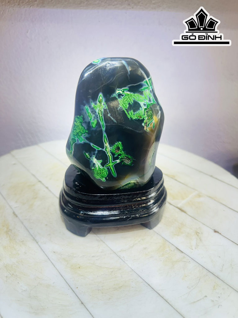 Tác Phẩm Đá Mã Não Xanh Vân Cao 18 Ngang 10 (cm) 1,4kg