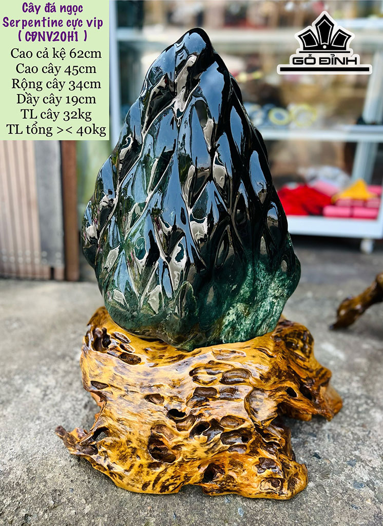 Tác Phẩm Đá Serpentine Cao 62 Ngang 34 Sâu 19 (cm) 40kg (Riêng Đá Cao 45 (cm) 32kg)