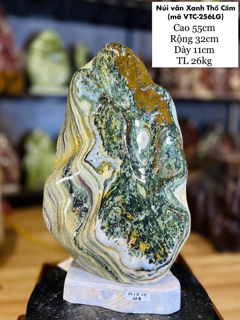Tác Phẩm Đá Serpentine Vân Xanh Thổ Cẩm Cao 55 Ngang 32 Sâu 11 (cm) 26kg