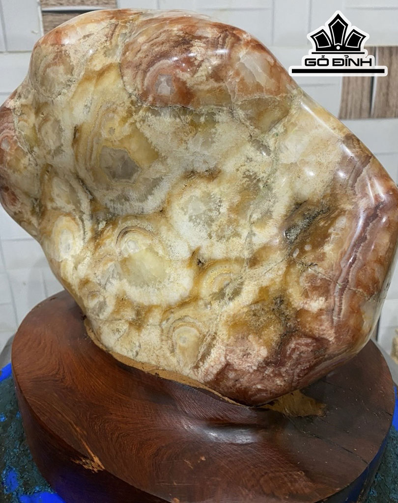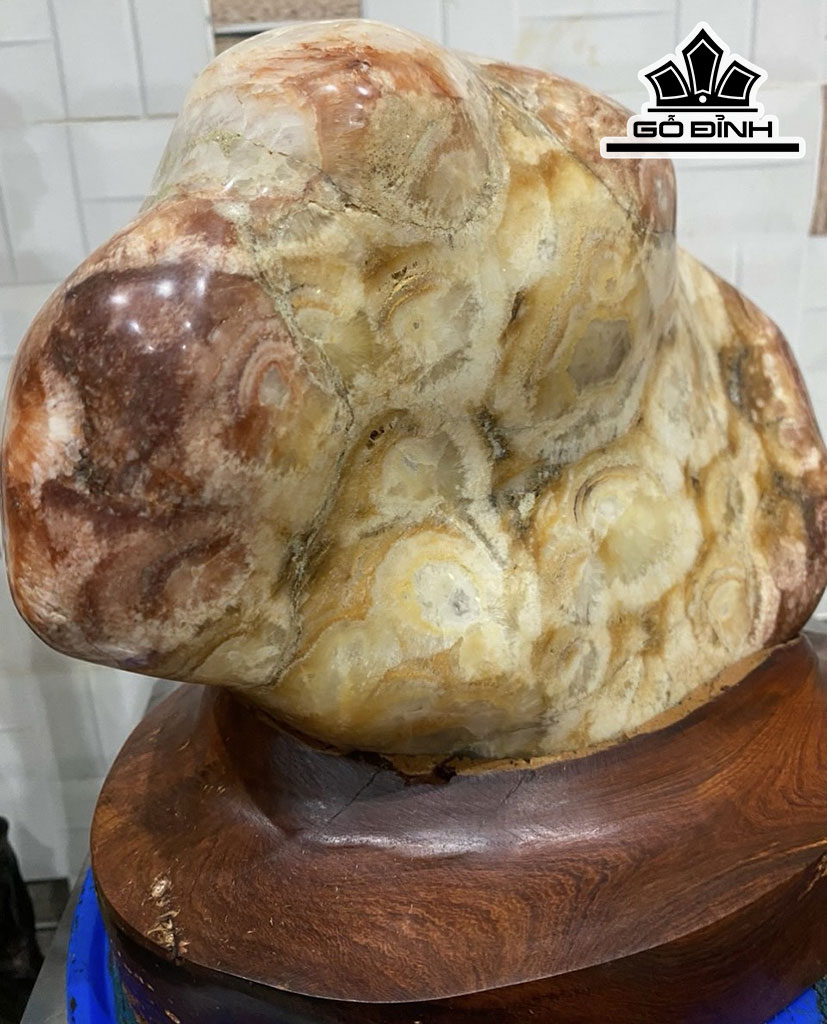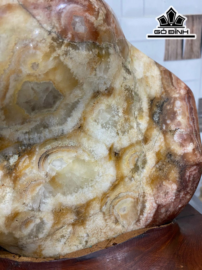 Tác Phẩm Đá Thạch Anh Bông Vàng Pha Đỏ Cao 25 Ngang 23 (cm) 8,6kg