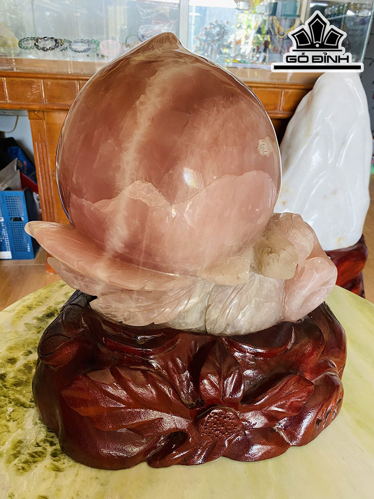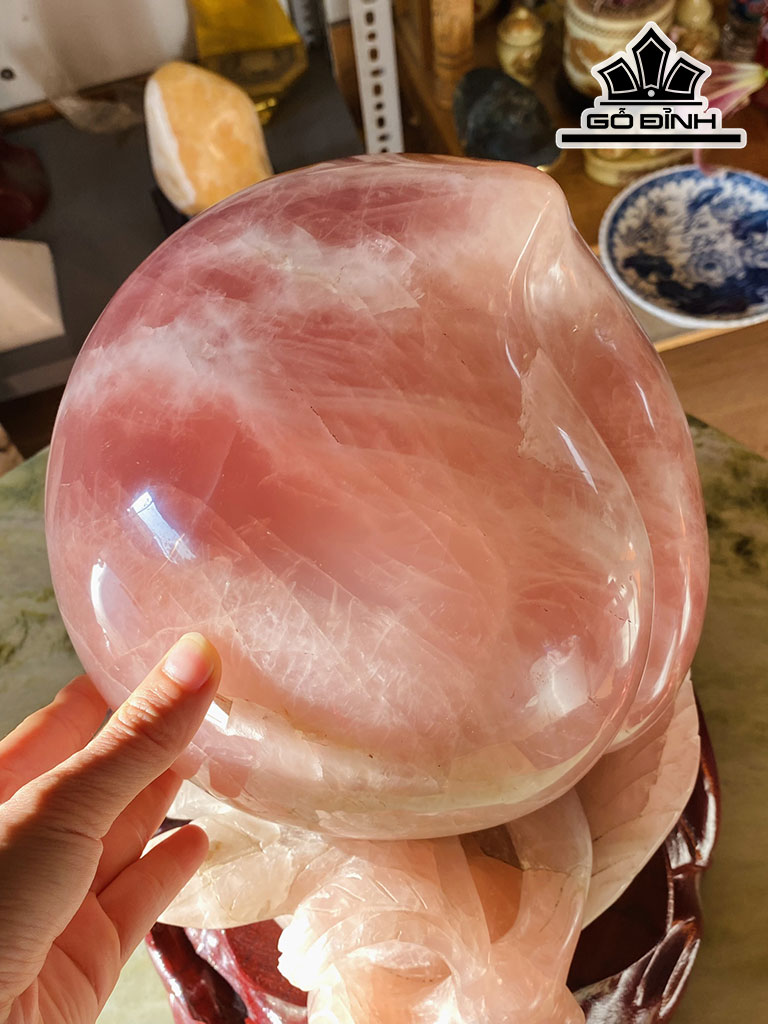 Tác Phẩm Đá Thạch Anh Hồng Cao 36 Ngang 33 Sâu 25 (cm) 17,5kg