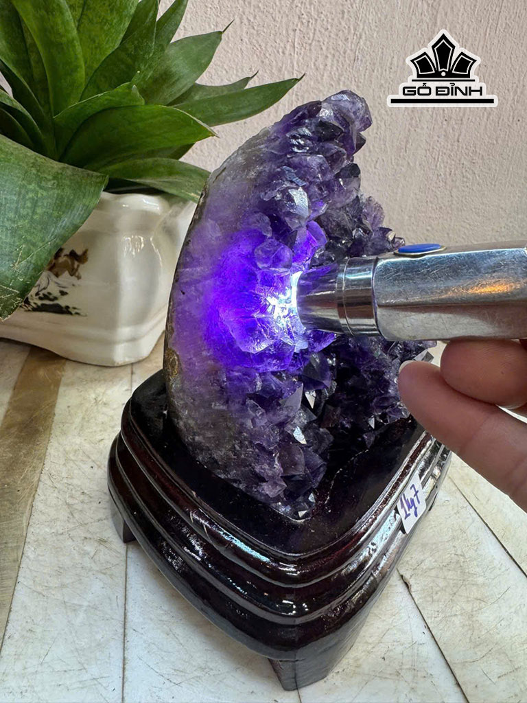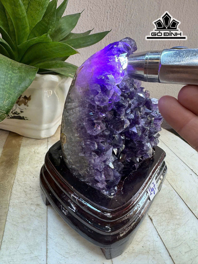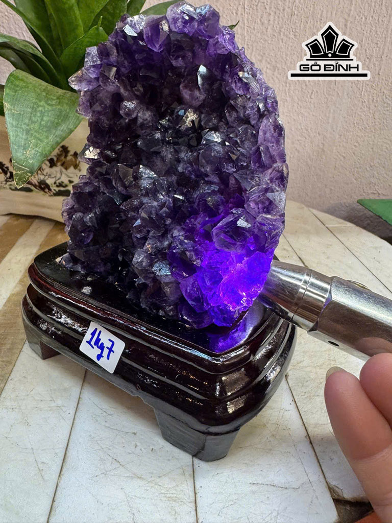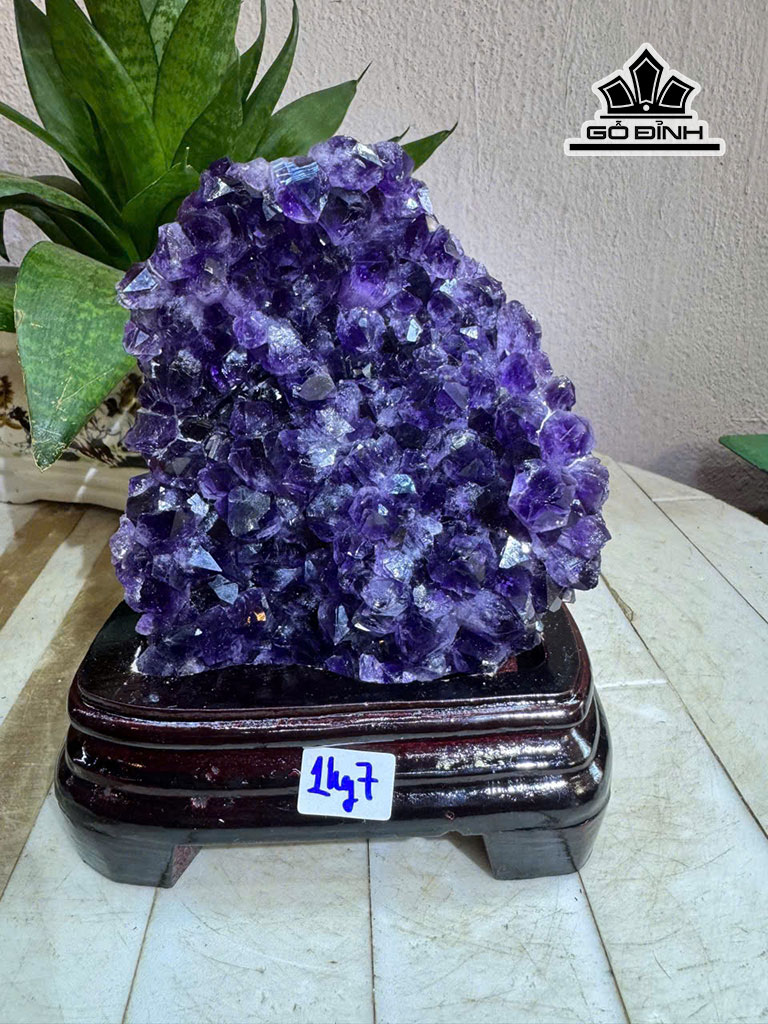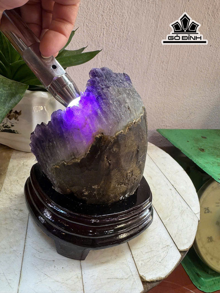 Tác Phẩm Đá Thạch Anh Tím Cao 17 Ngang 12 (cm) - 1,7kg Cả Đế
