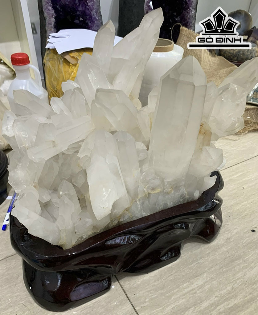 Tác Phẩm Đá Thạch Anh Trắng Cao 34 Ngang 27 Riêng Đá Cao 33,5 (cm)