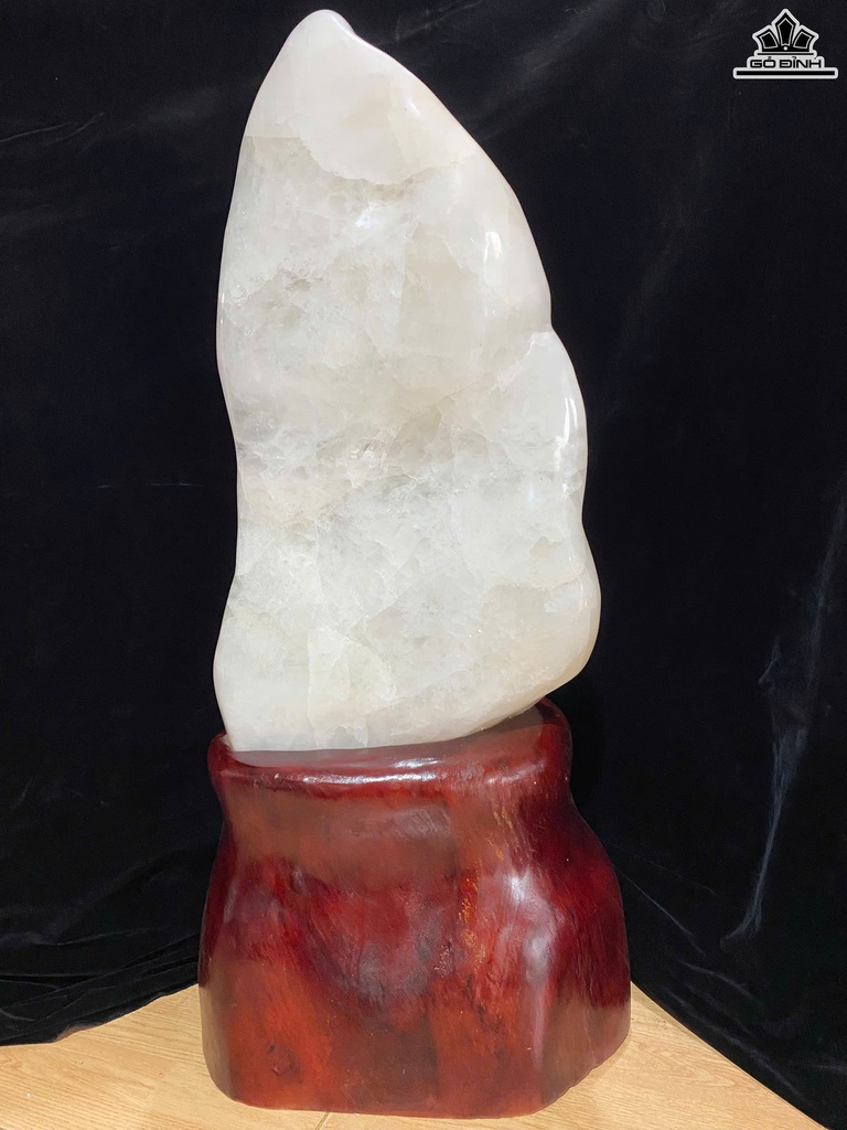 Tác Phẩm Đá Thạch Anh Trắng Cao Cả Đế 95 - Riêng Đá Cao 66 Ngang 36 Sâu 21 (cm) 52,5kg