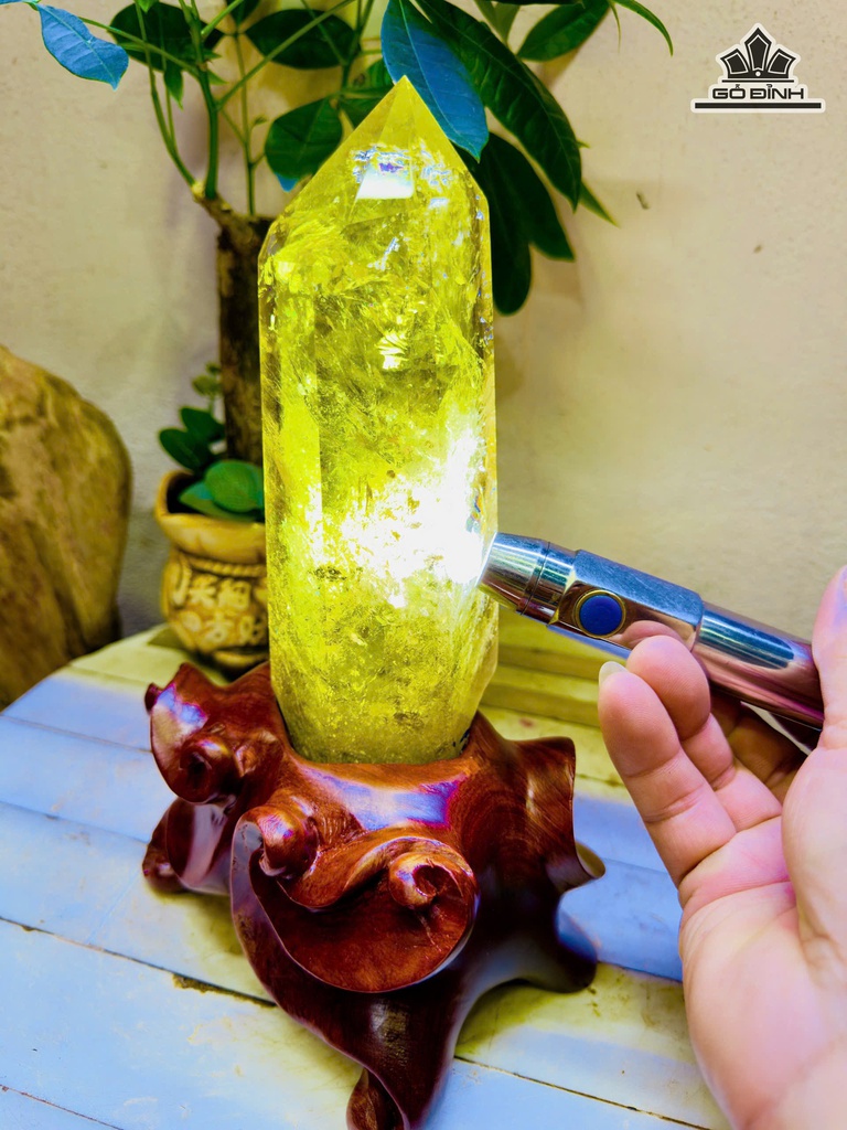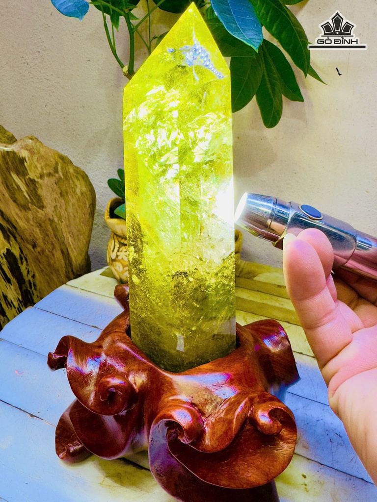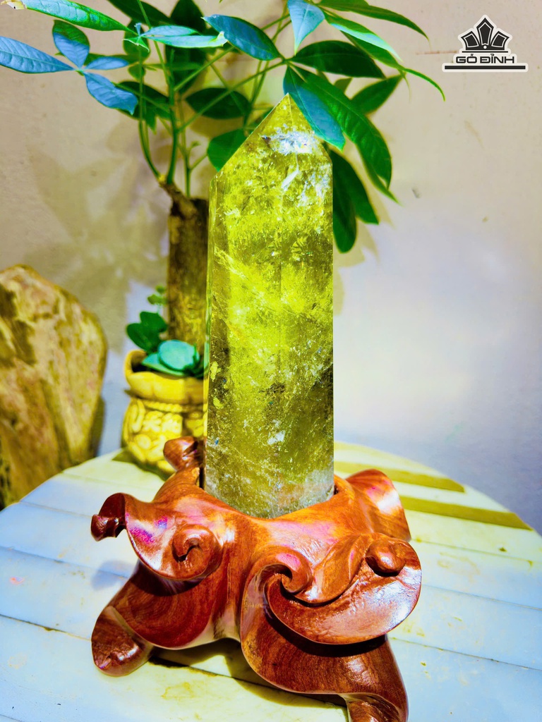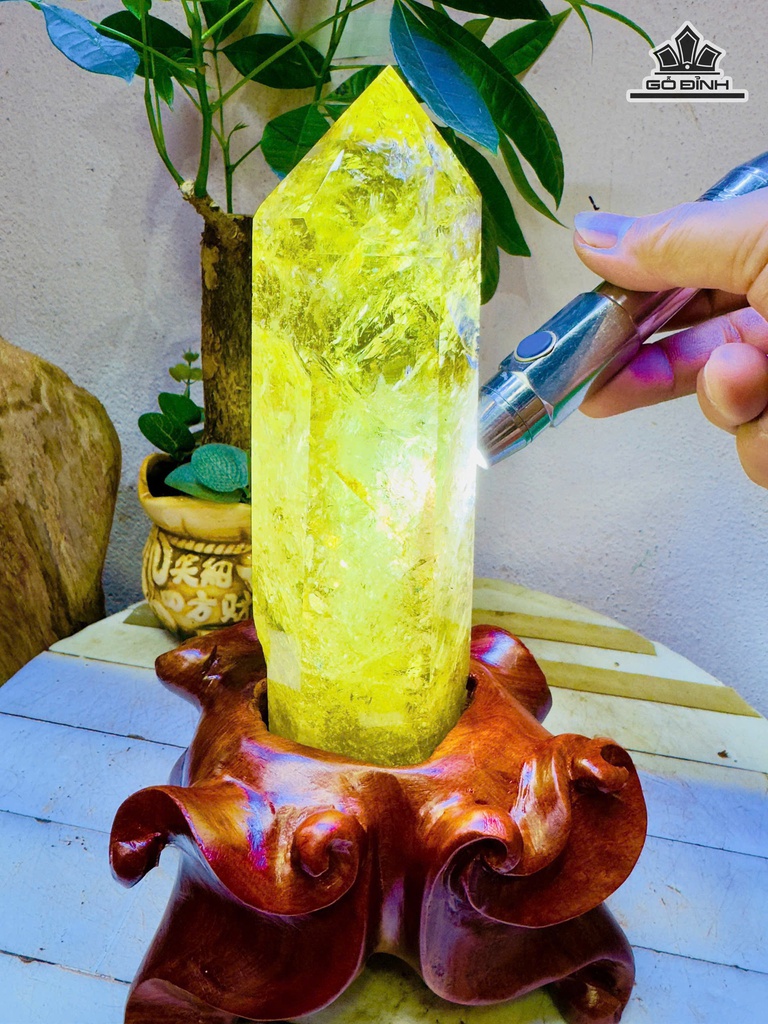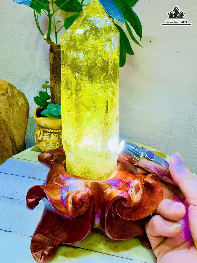Tác Phẩm Đá Thạch Anh Vàng Cao 27 Ngang 7 (cm) 2,15kg Luôn Đế