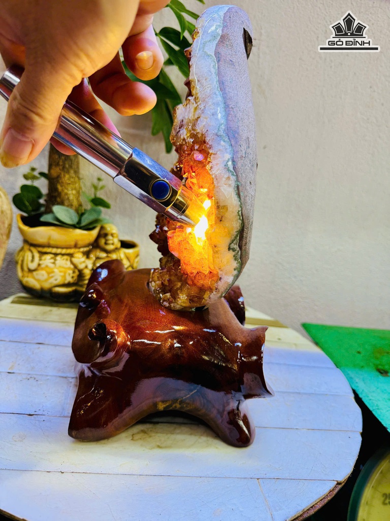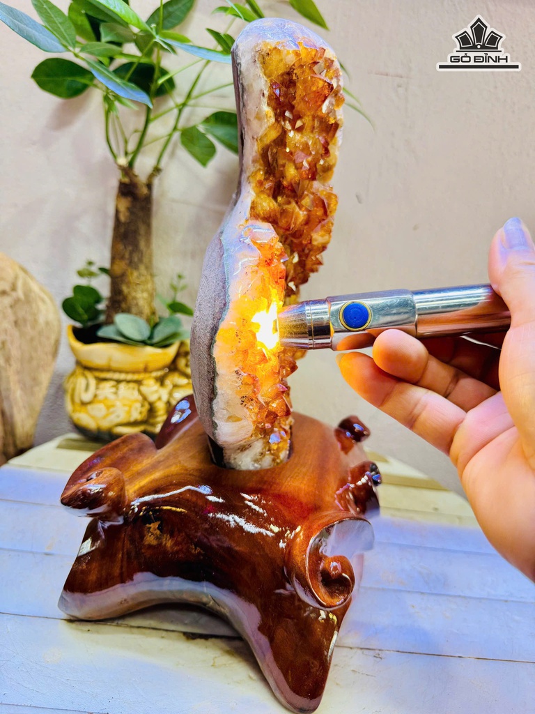 Tác Phẩm Đá Thạch Anh Vàng Cao 32 Ngang 17 (cm) 4kg Luôn Đế