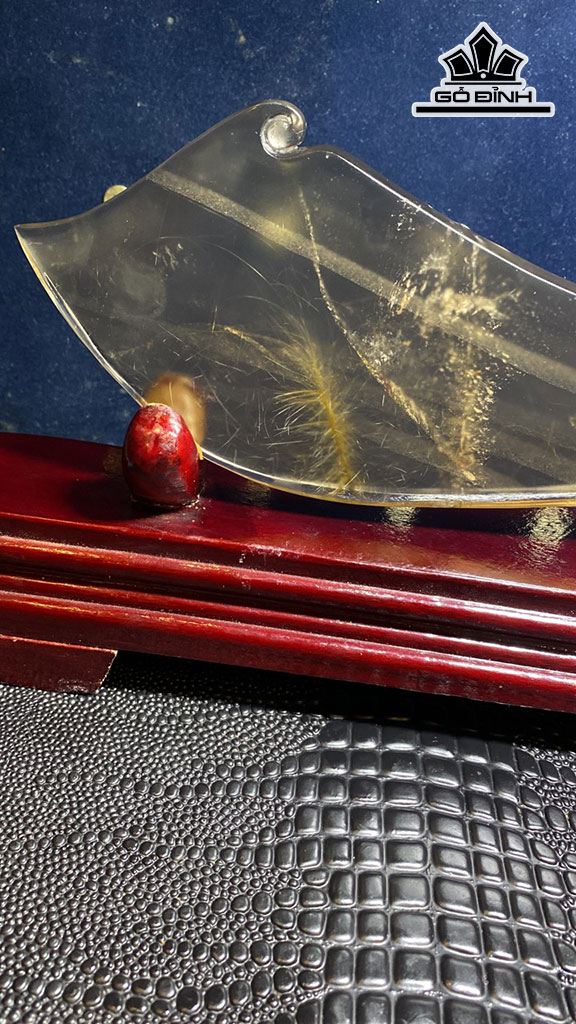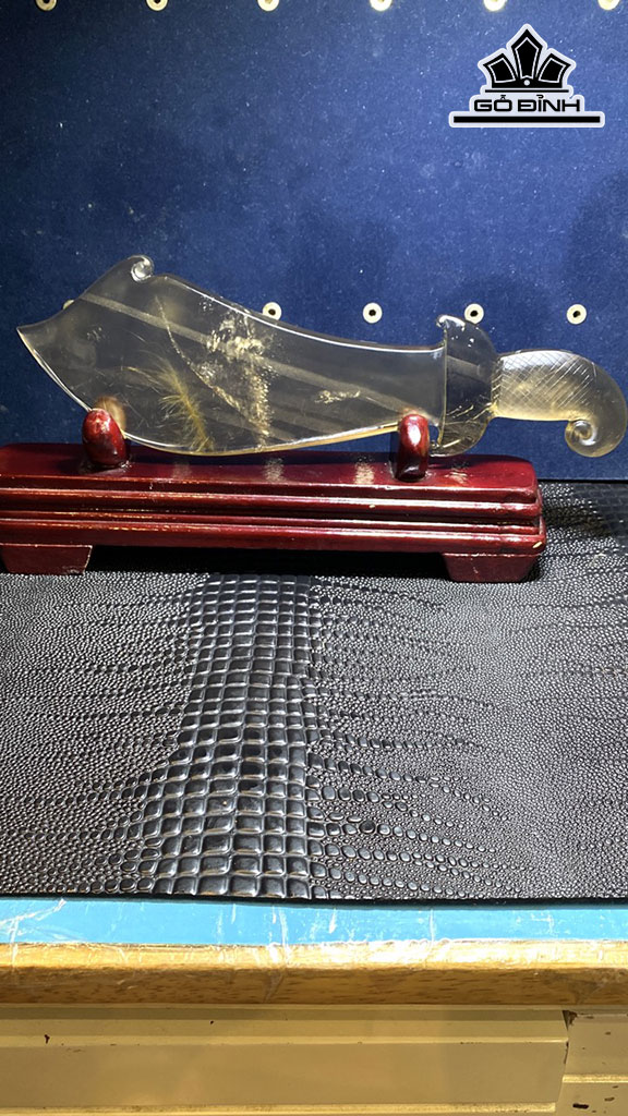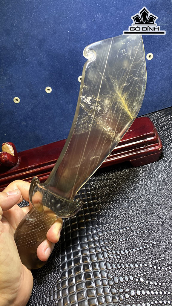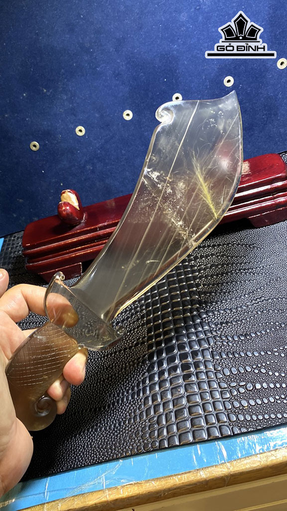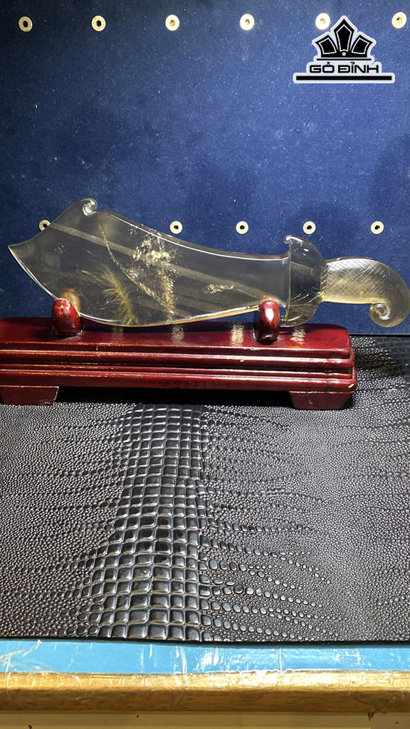 Tác Phẩm Đao Đồ Long Đá Thạch Anh Tóc Vàng Cao 286 Ngang 90 Sâu 15 (mm) 426,6g