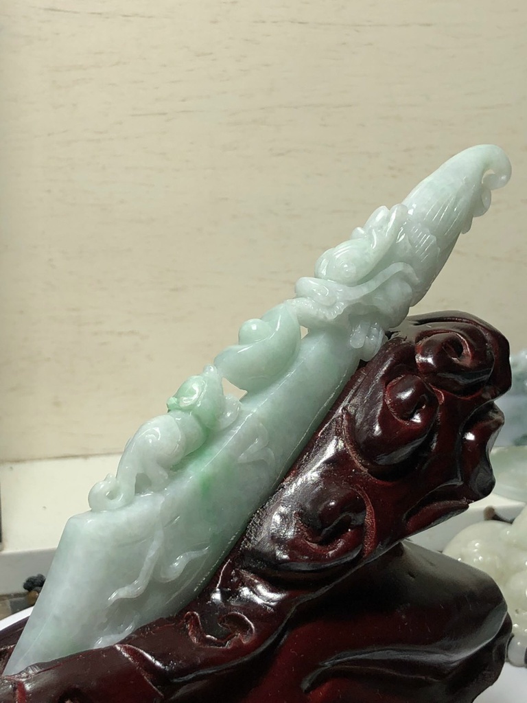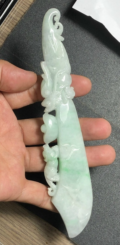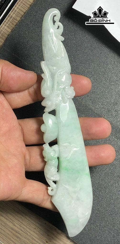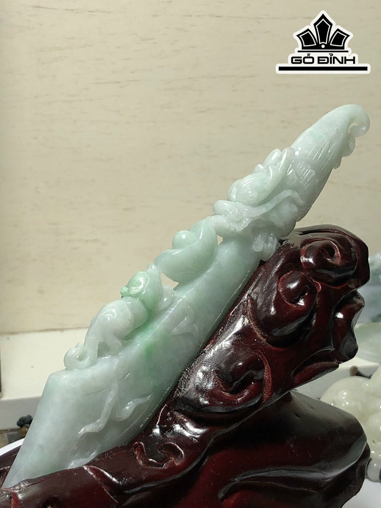 Tác Phẩm Đao Rồng Và Tỳ Hưu Đá Cẩm Thạch Cao 170 Ngang 12 Sâu 32 (mm) 95g (Chưa Tính Đế)