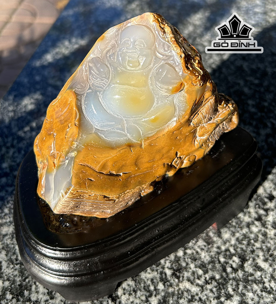 Tác Phẩm Di Lặc Đá Mã Não Cao 13 Ngang 15 (cm) 822g Riêng Đá Nặng 576g