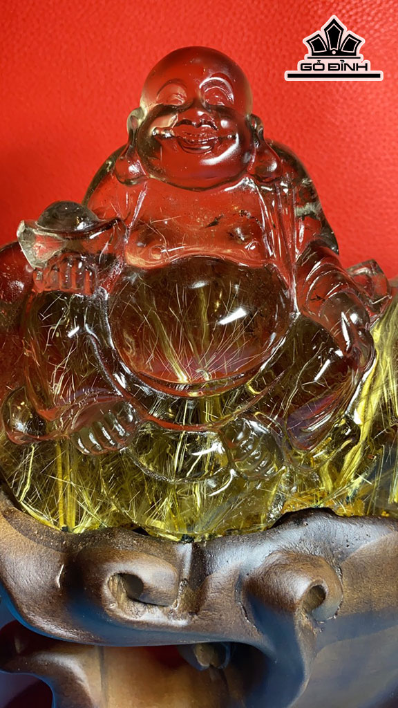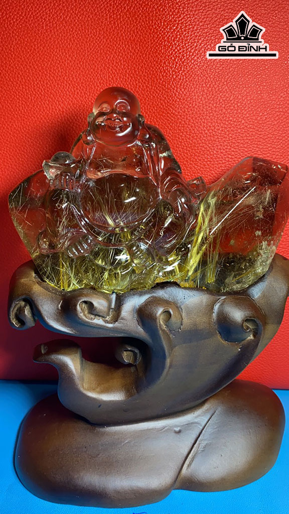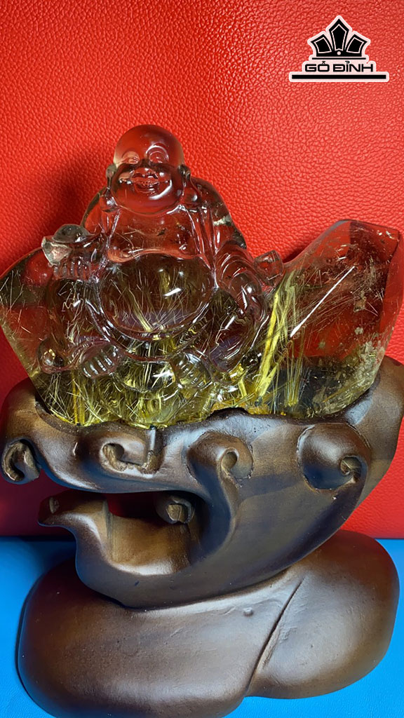 Tác Phẩm Di Lặc Đá Thạch Anh Tóc Vàng Cao 174 Ngang 109,9 Sâu 42,9 (mm) 690g