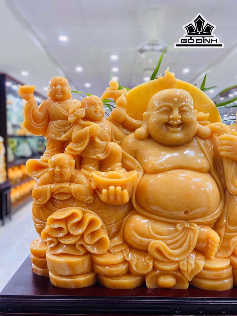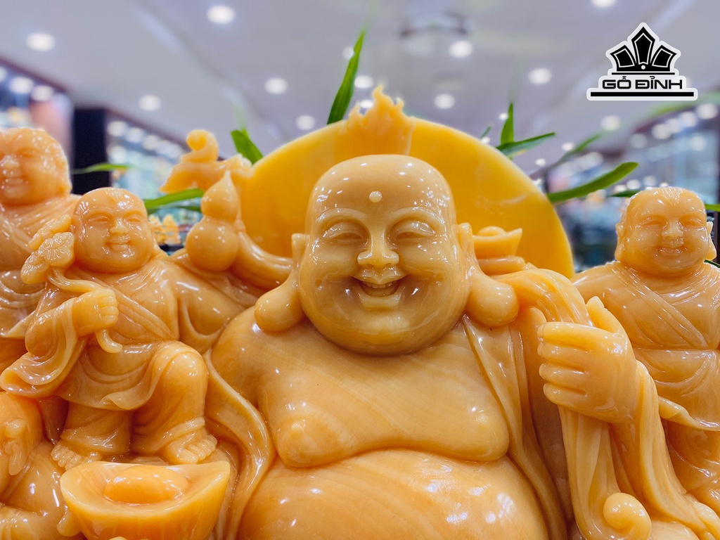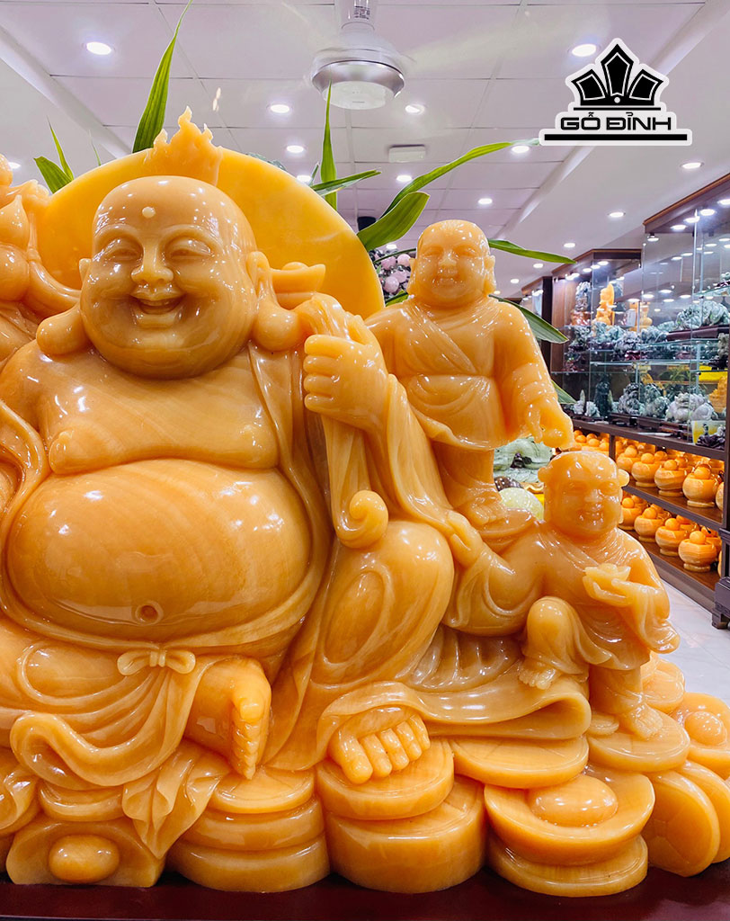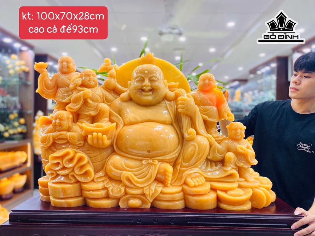 Tác Phẩm Di Lặc Ngũ Phúc Đá Ngọc Hoàng Long Cao 100 Ngang 70 Sâu 28 Đế Cao 93 (cm)