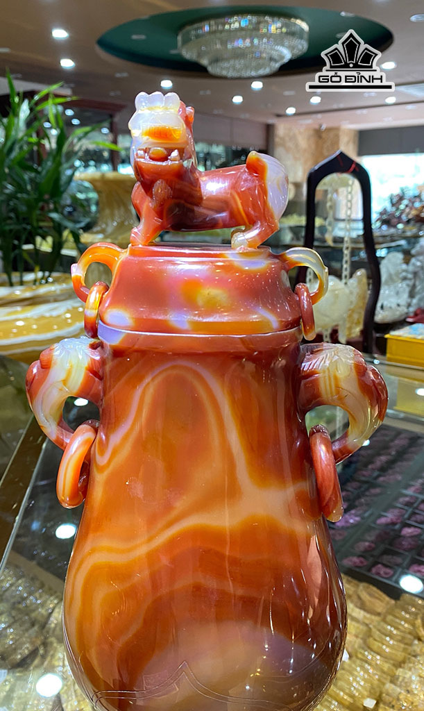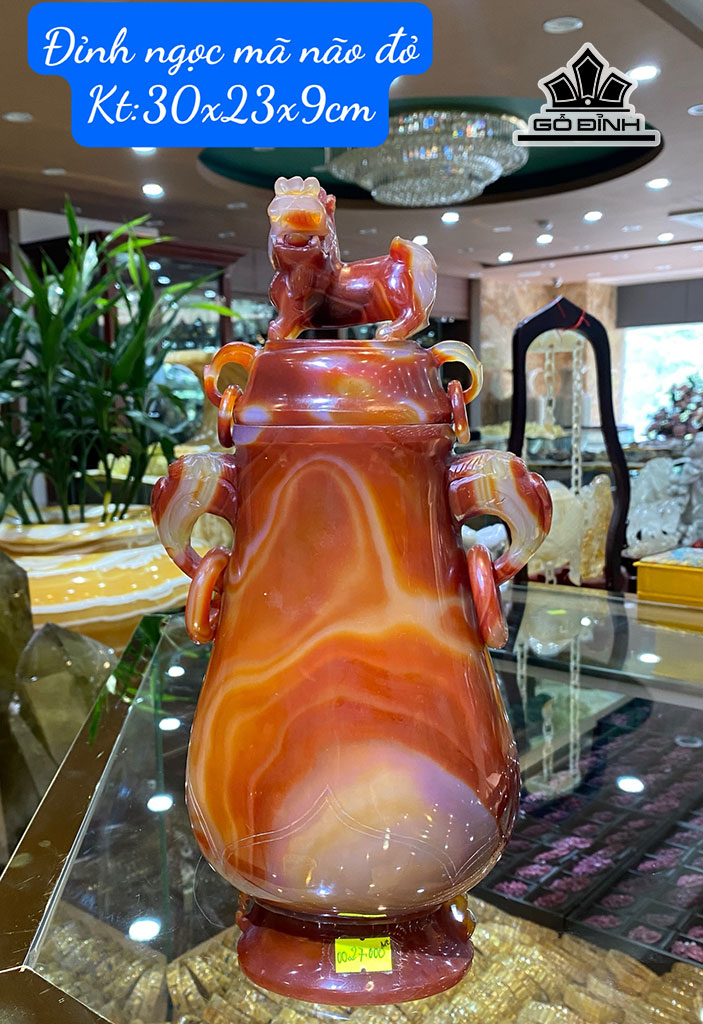 Tác Phẩm Đỉnh Ngọc Đá Mã Não Đỏ Cao 30 Ngang 23 Sâu 9 (cm)