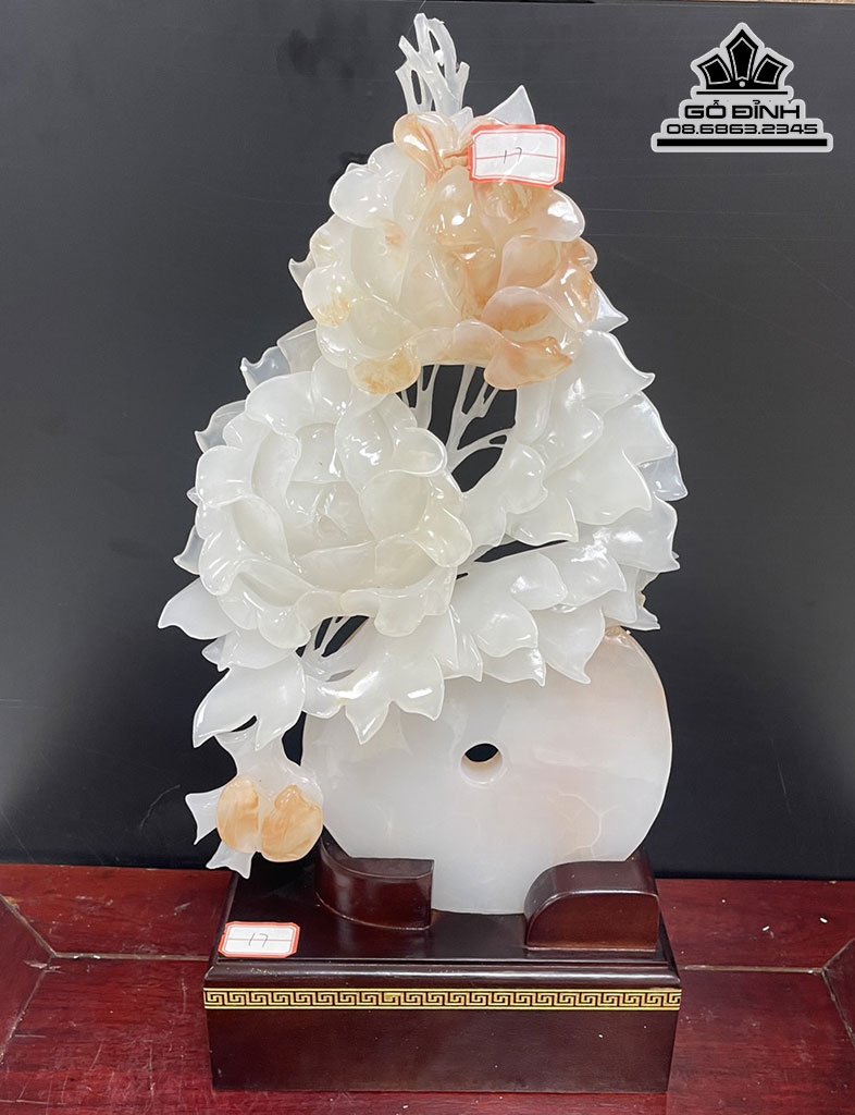 Tác Phẩm Đồng Điếu Hoa Mẫu Đơn Đá Ngọc Onix Cao 48 Ngang 23 Sâu 9 (cm)