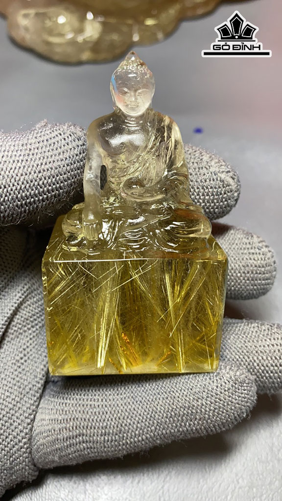 Tác Phẩm Dược Sư Đá Thạch Anh Tóc Vàng Cao 68,6 Ngang 38,6 Sâu 33 (mm) 115g