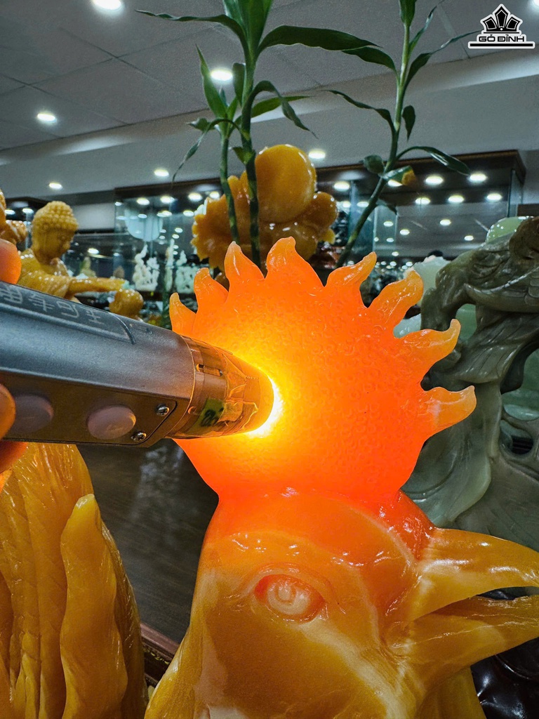 Tác Phẩm Gà Trống Đá Ngọc Hoàng Long Cao 76 Ngang 70 Sâu 15 (cm) - Cao Cả Đế 95 (cm)