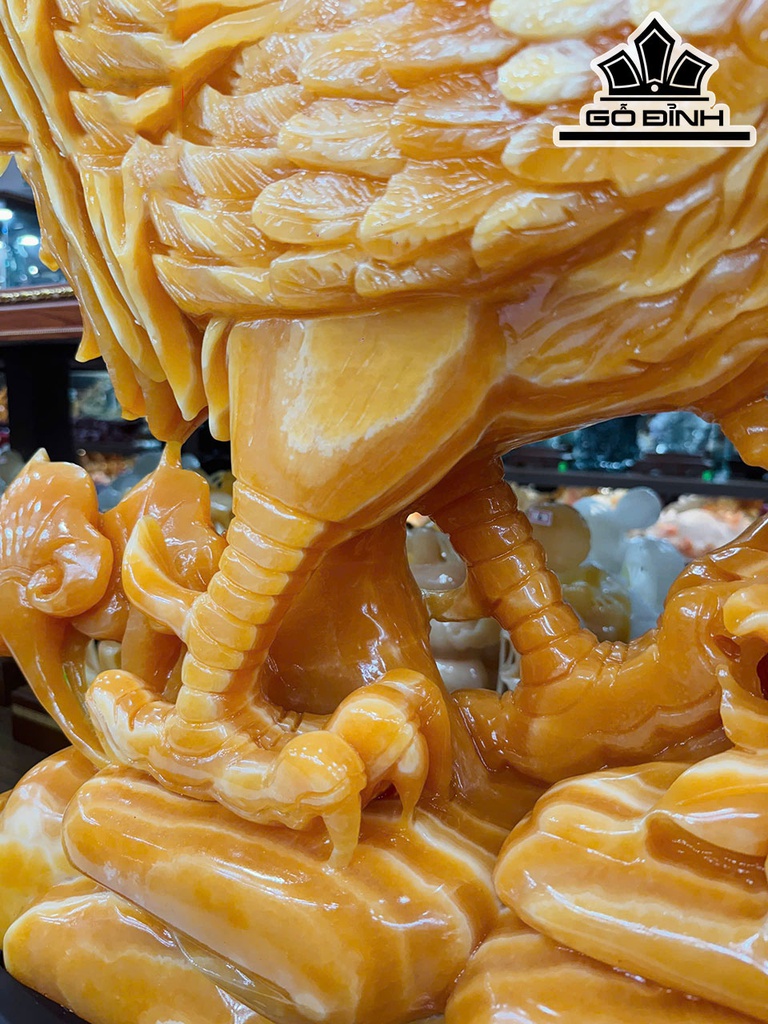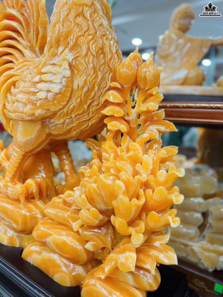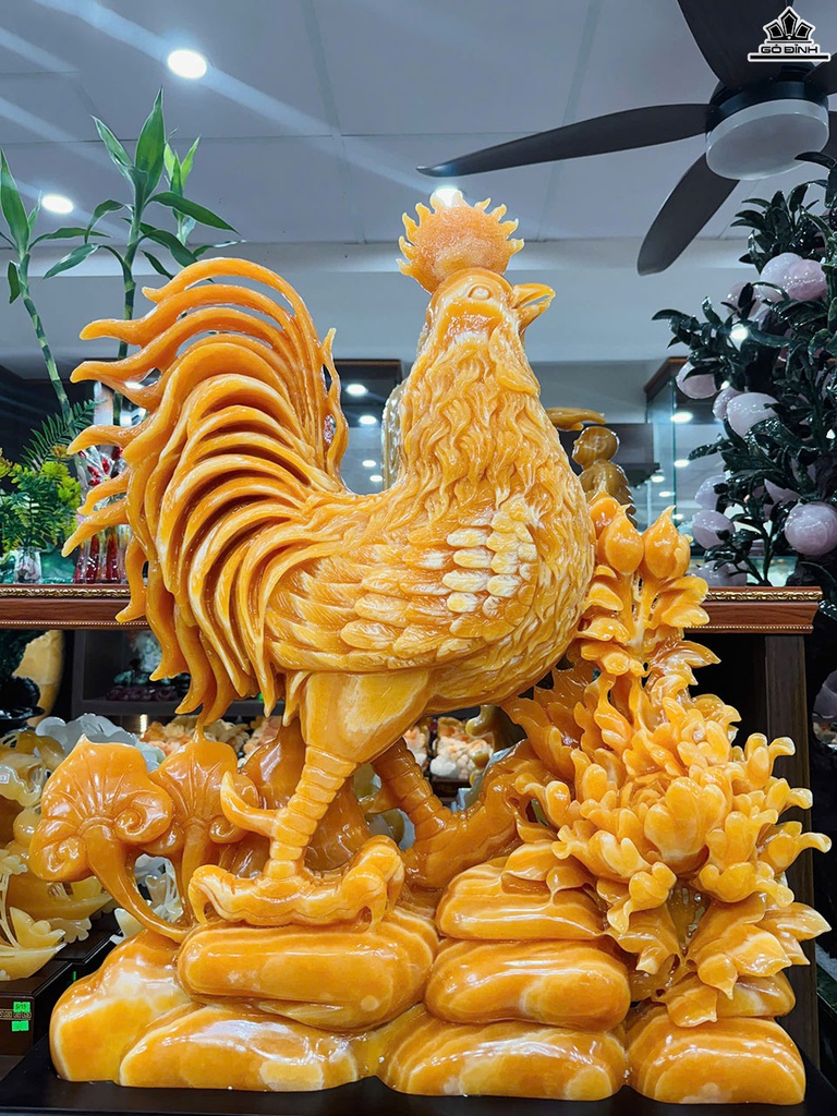 Tác Phẩm Gà Trống Đá Ngọc Hoàng Long Cao 76 Ngang 70 Sâu 15 (cm) - Cao Cả Đế 95 (cm)