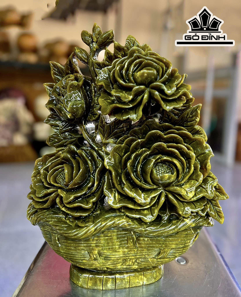 Tác Phẩm Giỏ Hoa Đá Serpentine Cao 37 Ngang 31 Sâu 10 (cm) 7,8kg