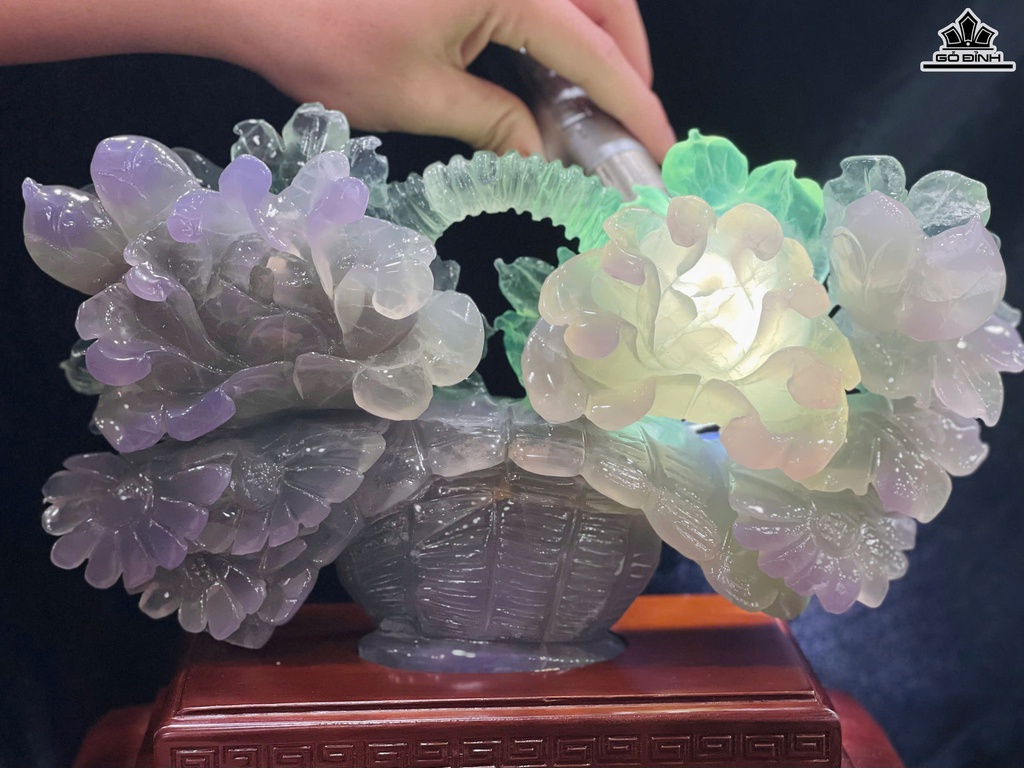 Tác Phẩm Giỏ Hoa Ngọc Florite Cao 30 Ngang 28 Sâu 6 (cm) - Cao Cả Đế 38 (cm)