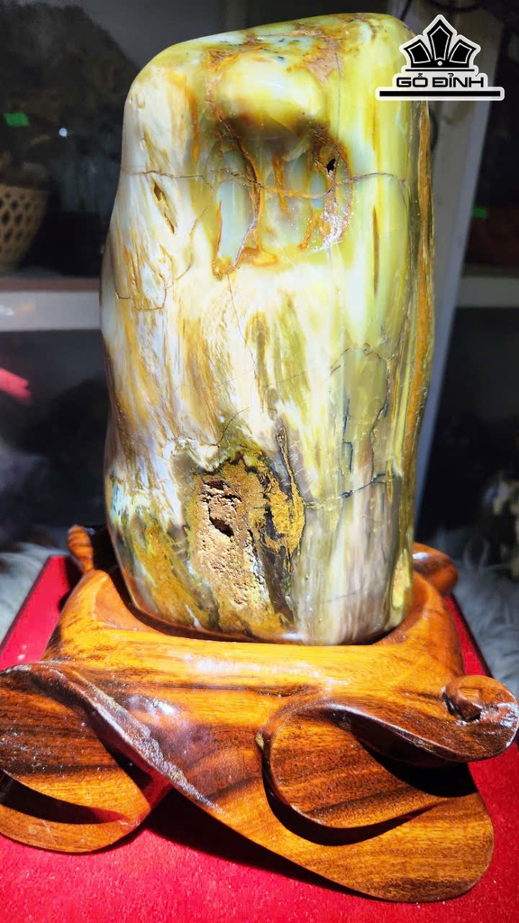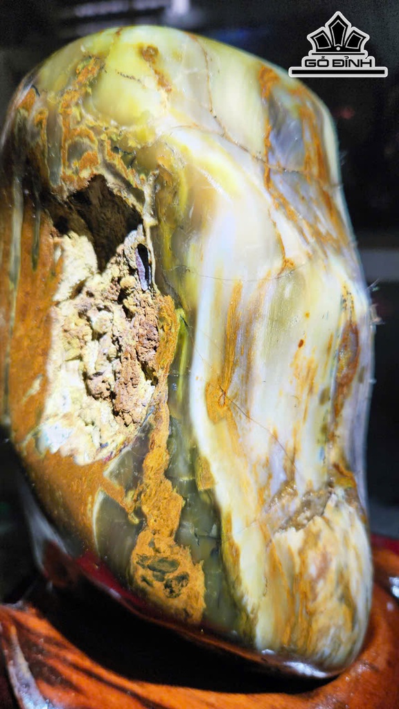 Tác Phẩm Gỗ Hóa Ngọc Đa Sắc Cao Cả Đế 29 Ngang 14 (cm) 3,9kg