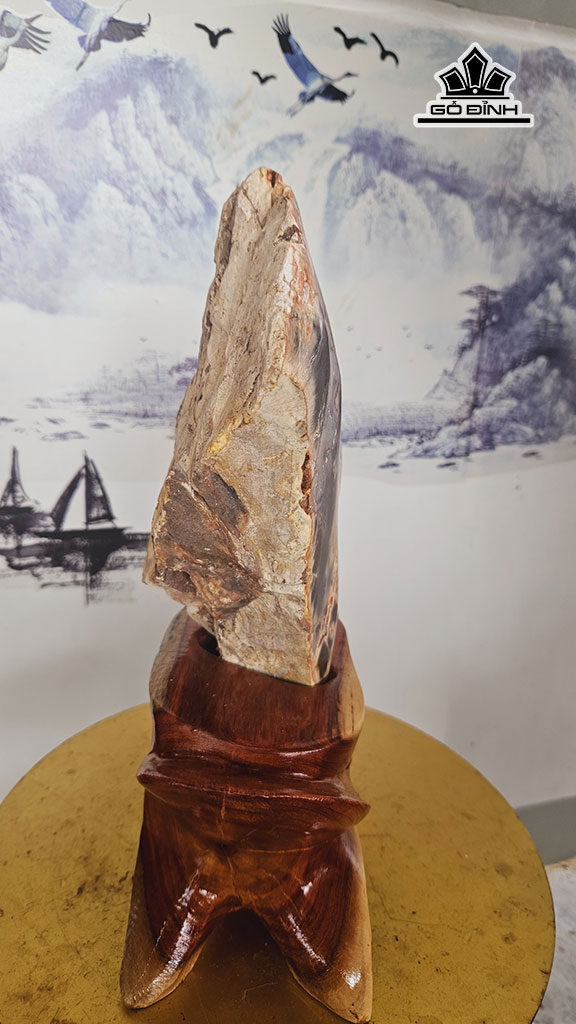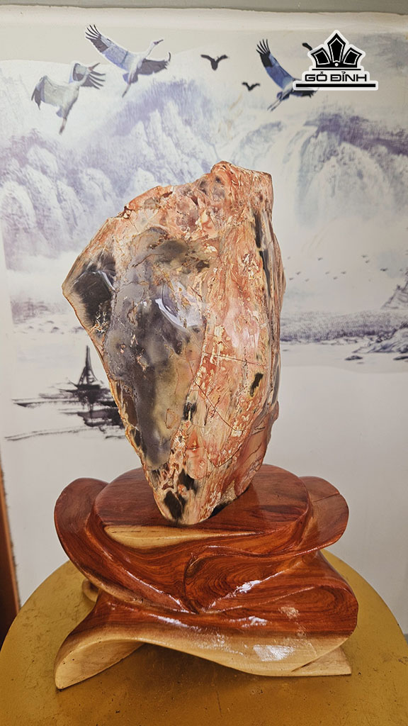Tác Phẩm Gỗ Hóa Thạch Đỏ Đen Cao 34 Ngang 13 (cm) 3,5kg