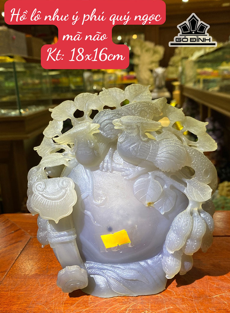 Tác Phẩm Hồ Lô Như Ý Phú Quý Đá Mã Não Cao 18 Ngang 16 (cm)