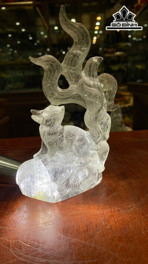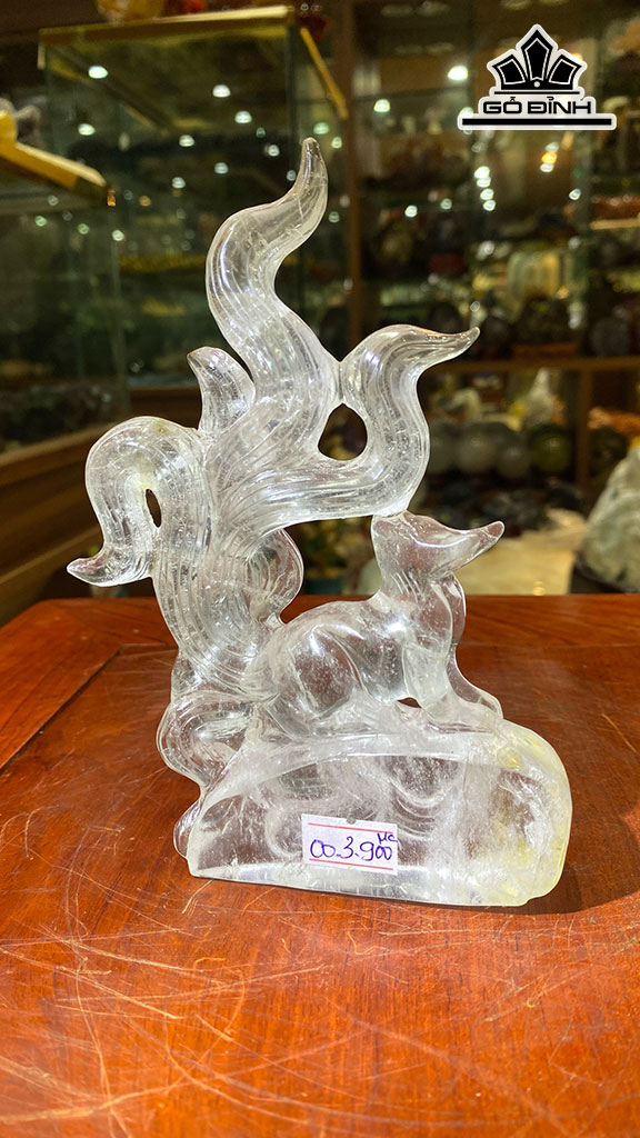 Tác Phẩm Hồ Ly 9 Đuôi Đá Thạch Anh Trắng Cao 16 Ngang 10 Sâu 4,5 (cm)
