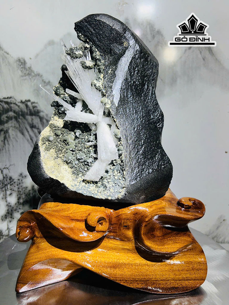 Tác Phẩm Hoa Ưu Đàm Đá Trầm Tích Cao 32 Ngang 23 (cm) 7,6kg Luôn Đế