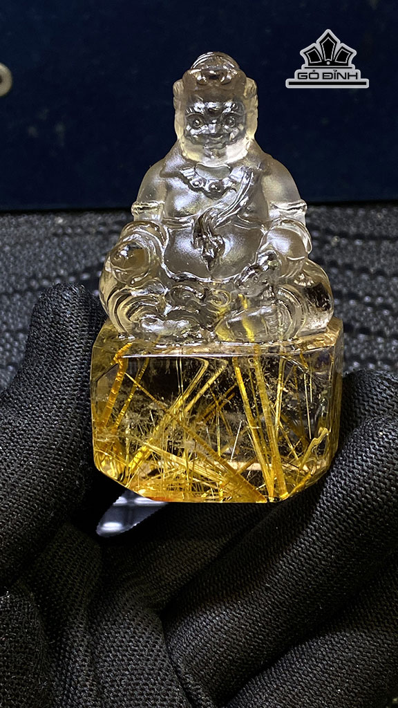 Tác Phẩm Hoàng Thần Tài Bảo Thiên Đá Thạch Anh Tóc Vàng Cao 72 Ngang 41 Sâu 32 (mm) 133,8g