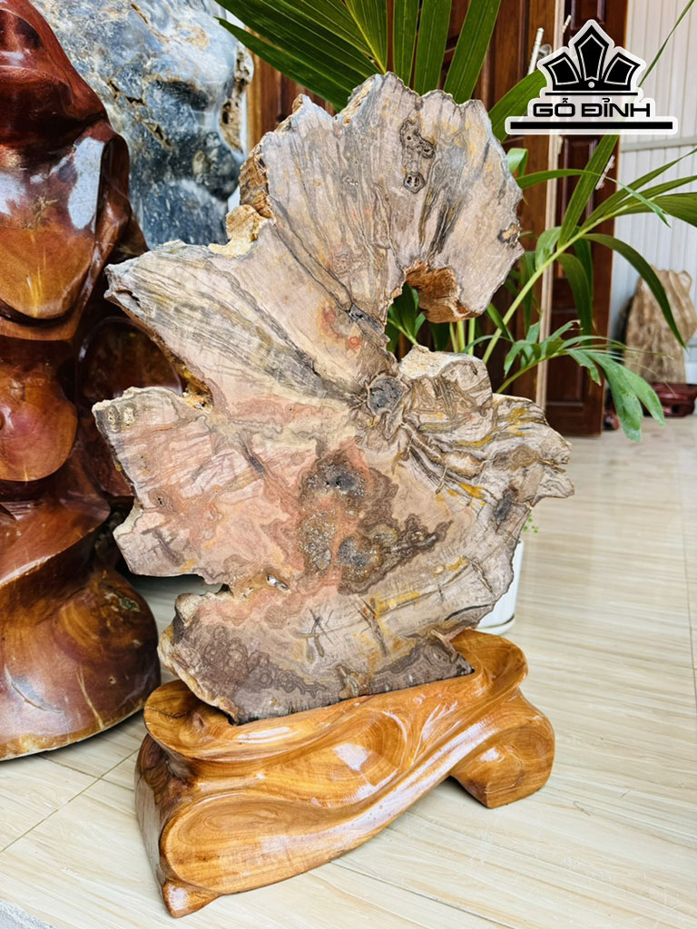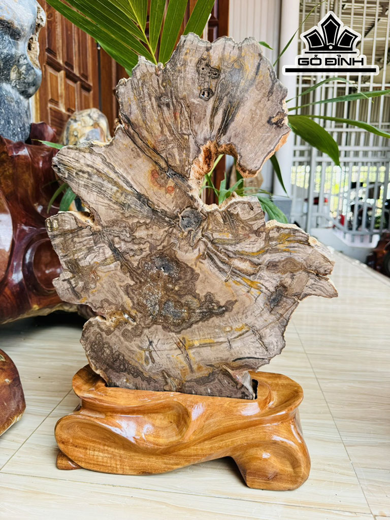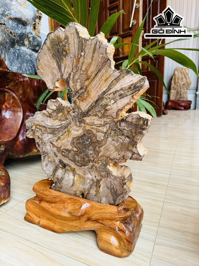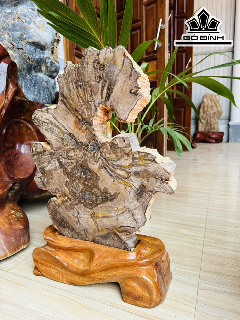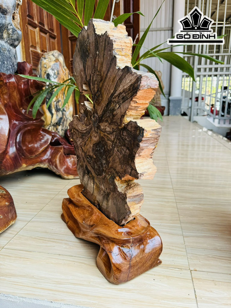 Tác Phẩm Khúc Gỗ Hóa Thạch Xẻ Lát Dáng Bonsai Cao 58 Ngang 40 (cm) 20kg