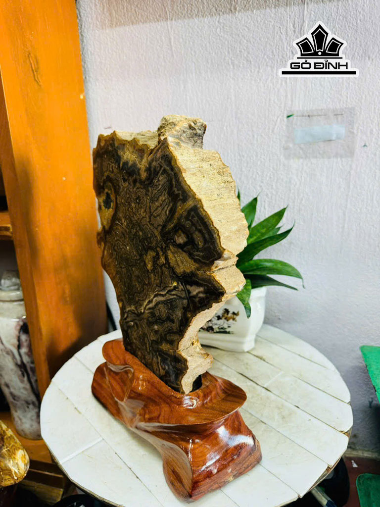 Tác Phẩm Lát Gỗ Thủy Tùng Gỗ Hóa Thạch Cao 34 Ngang 25 Sâu 4,5 (cm) 5,5kg
