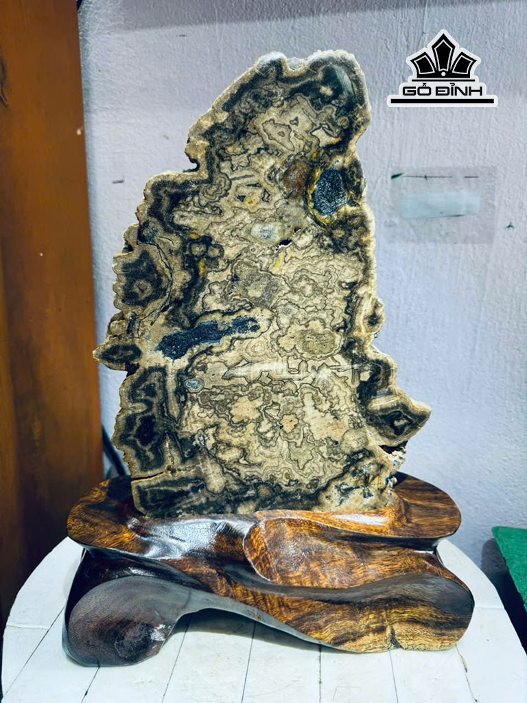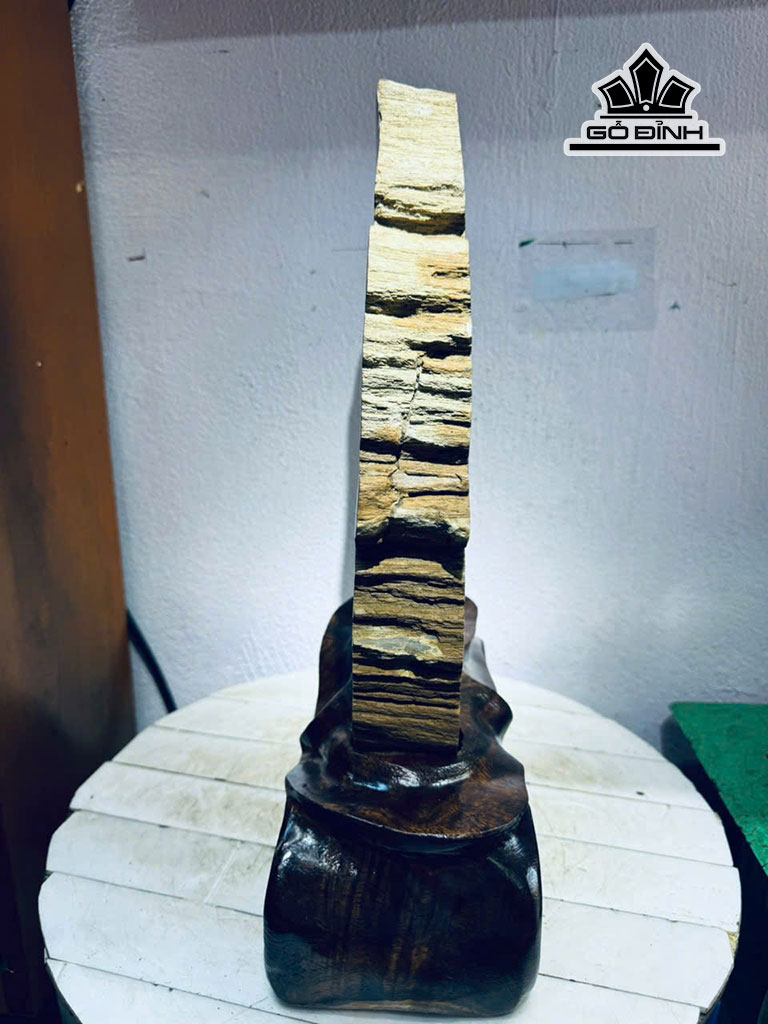 Tác Phẩm Lát Gỗ Thủy Tùng Gỗ Hóa Thạch Cao 40 Ngang 23 Sâu 4,5 (cm) 7,5kg