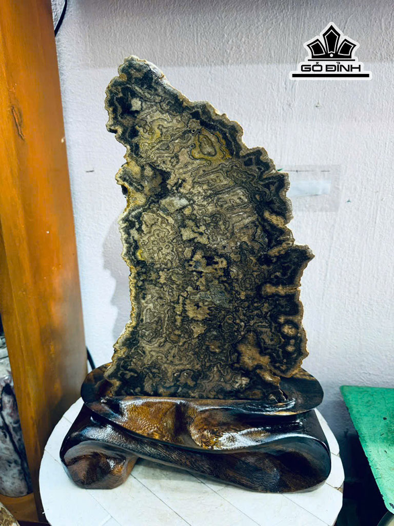 Tác Phẩm Lát Gỗ Thủy Tùng Gỗ Hóa Thạch Cao 47 Ngang 22 Sâu 4,5 (cm) 8,8kg
