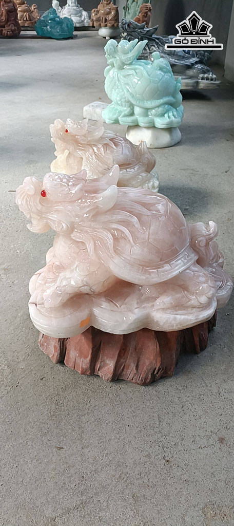 Tác Phẩm Long Quy Đá Canxit Hồng Cao 26 Ngang 33 (cm) 18kg