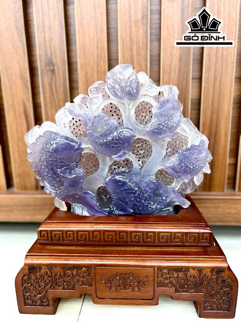 Tác Phẩm Ngũ Ngư Đá Flourite Cao 33 Ngang 28 (cm) 4kg Riêng Đá Cao 21 Ngang 28 (cm) 2.6kg