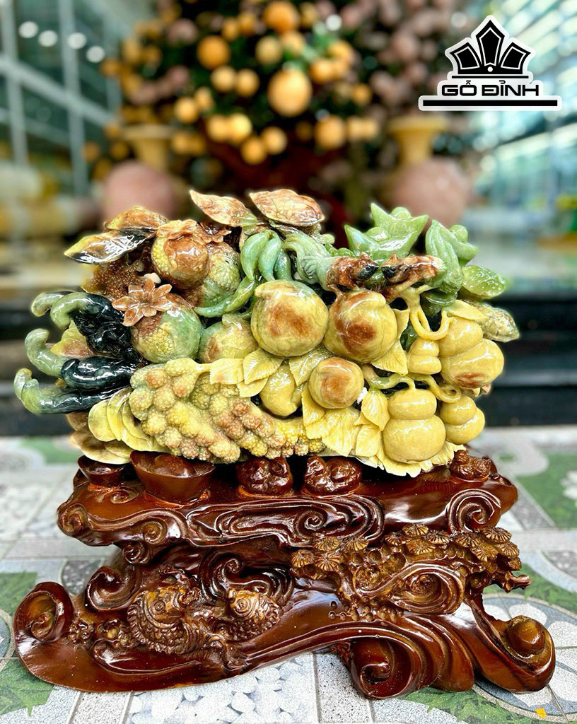 Tác Phẩm Ngũ Quả Phú Quý Đá Serpentine Cao 38 Ngang 42 (cm) 13kg Riêng Đá Cao 23 Ngang 43 (cm) 7,5kg