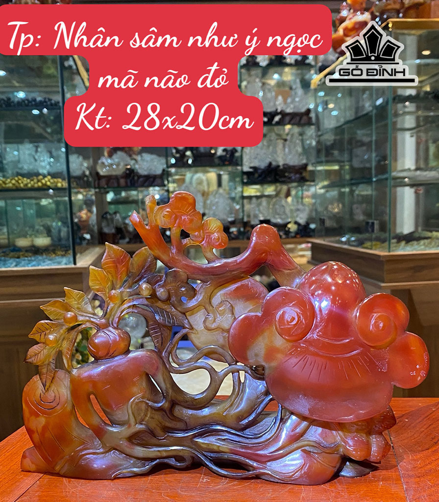 Tác Phẩm Nhân Sâm Như Ý Đá Mã Não Đỏ Cao 28 Ngang 20 (cm)