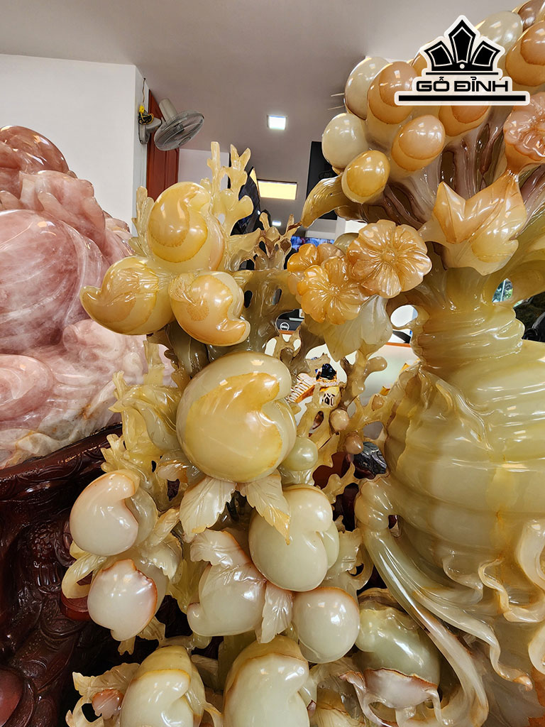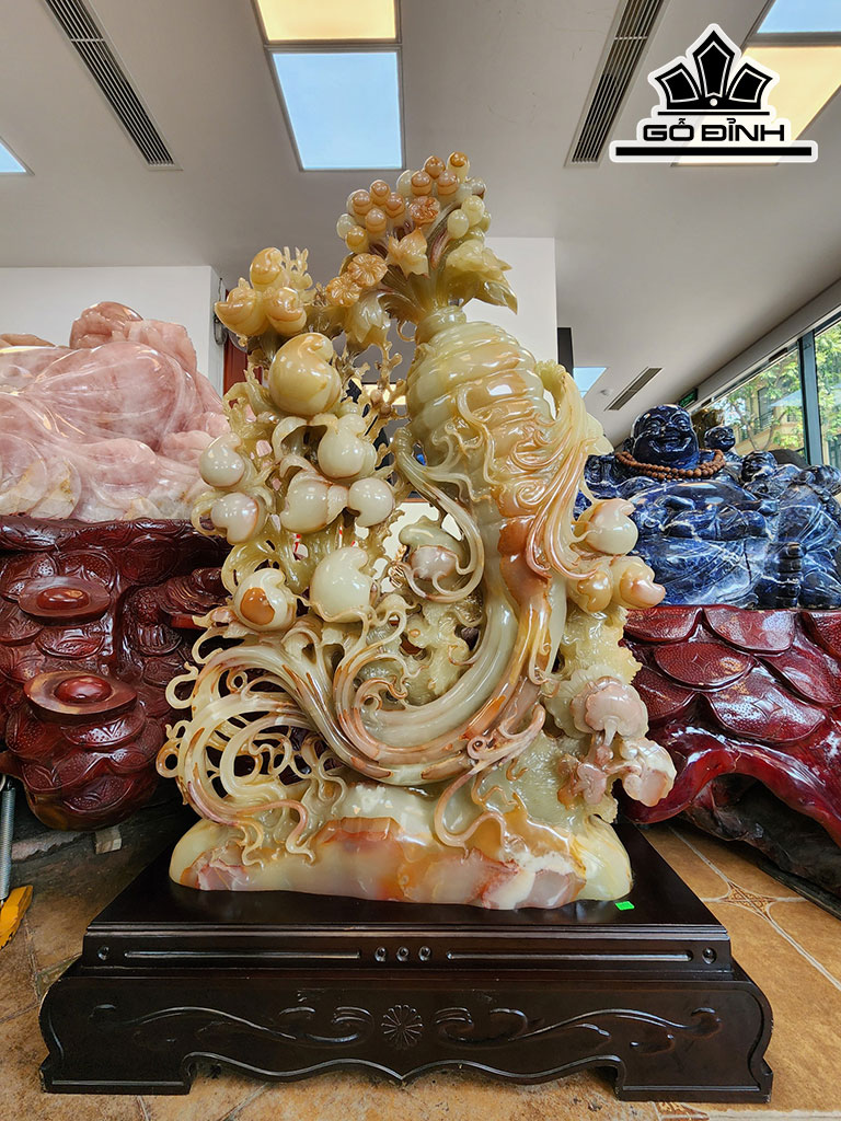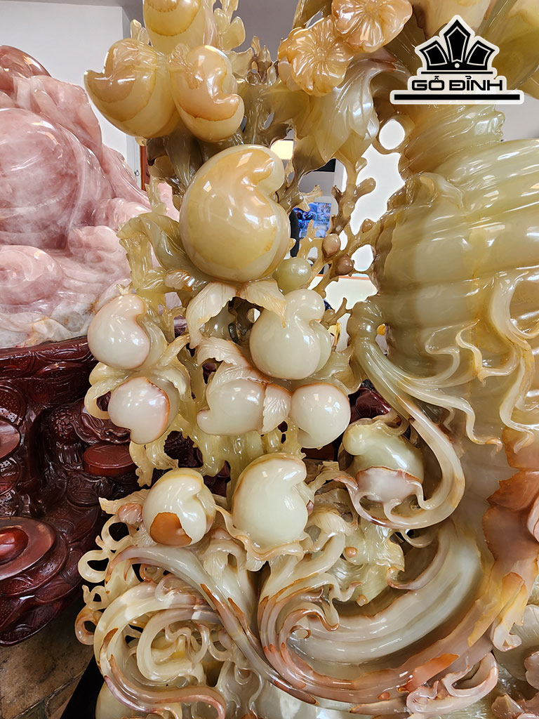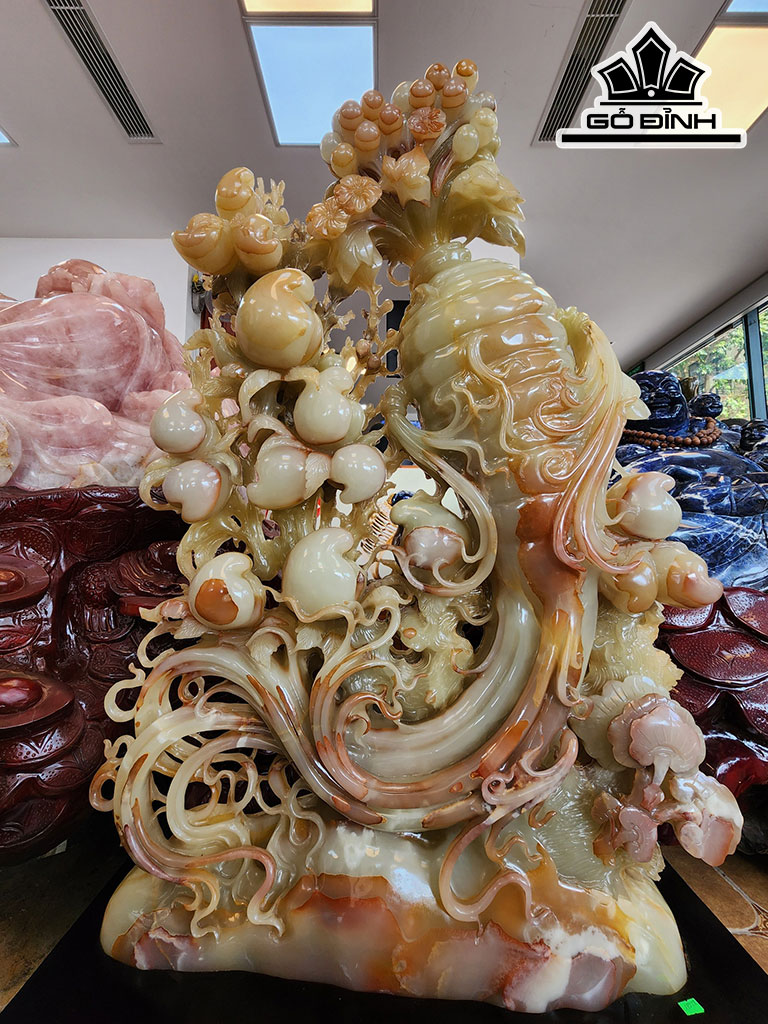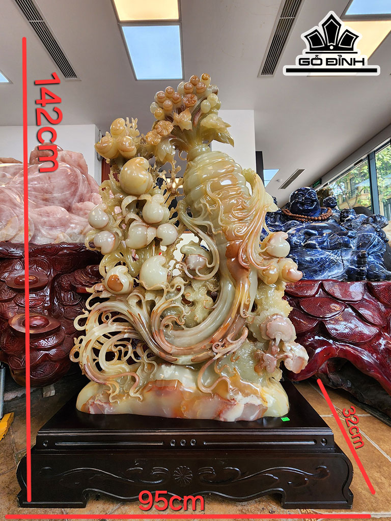 Tác Phẩm Nhân Sâu Trường Thọ Tài Lộc Đá Onyx Xanh Huyết Ngọc Cao 95 Ngang 32 Sâu 142 (cm) 280kg