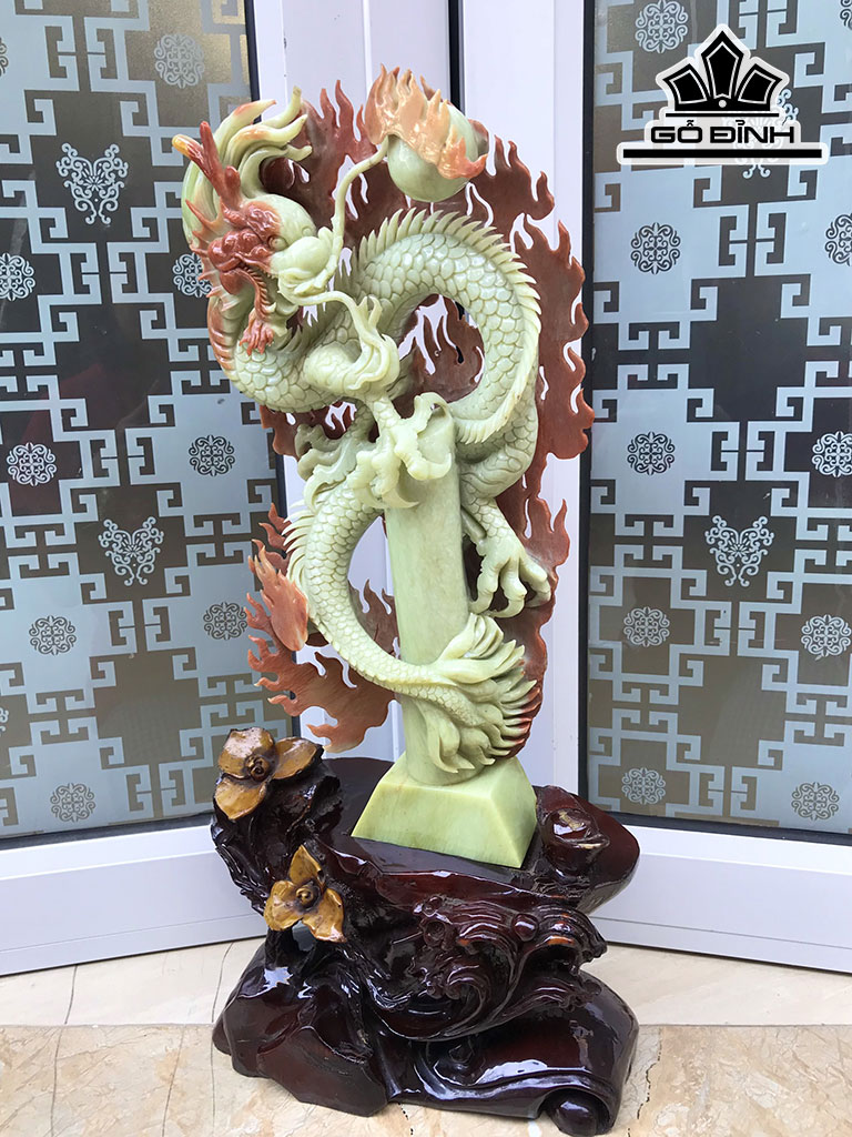 Tác Phẩm Nhất Long Hưng Thịnh Đá Serpentine Cao 56,5 Ngang 23 Sâu 11 (cm)