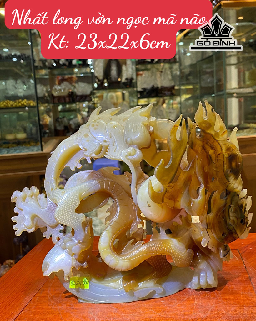 Tác Phẩm Nhất Long Vờn Ngọc Đá Mã Não Cao 23 Ngang 22 Sâu 6 (cm)