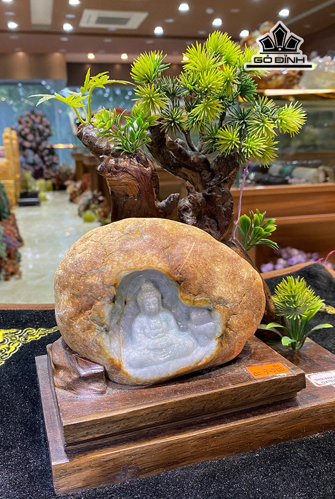 Tác Phẩm Phật Adida Đá Cẩm Thạch Cao 23 Ngang 10 Riêng Đá Cao 13 (cm)
