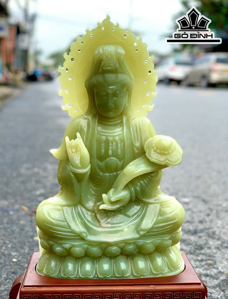 Tác Phẩm Phật Bà Tọa Đài Sen Đá Onyx Xanh Cao 55 Ngang 36 (cm) 13,2kg Riêng Đá Cao 43 Ngang 25 (cm) 11,4kg
