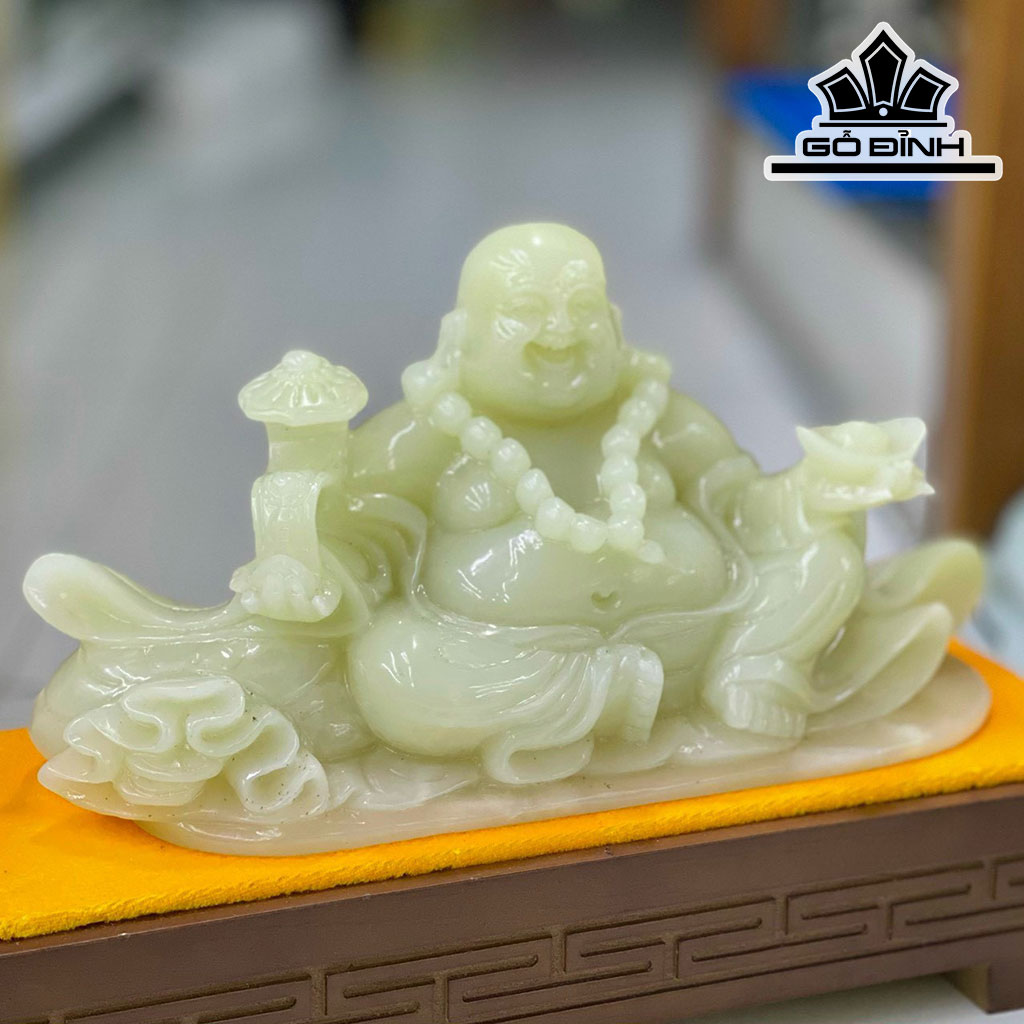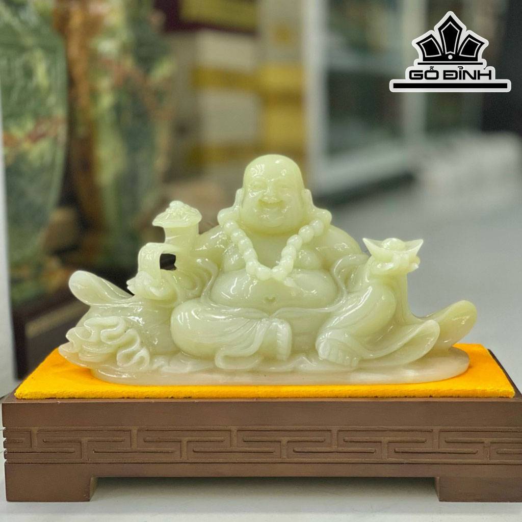Tác Phẩm Phật Di Lặc Đá Onyx Xanh Ngang 34 (cm)