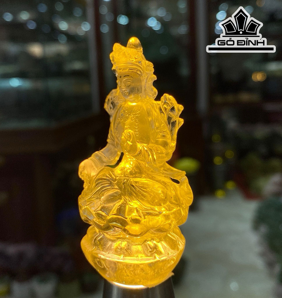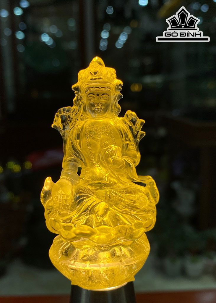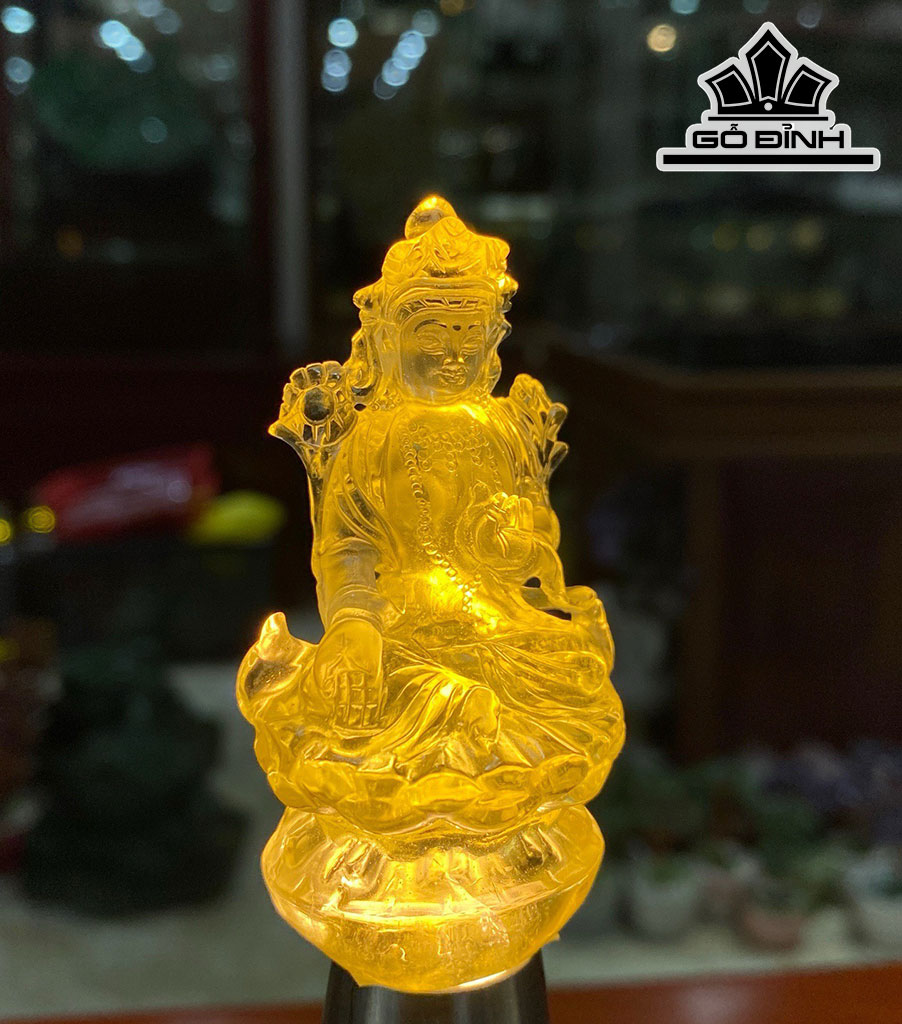 Tác Phẩm Phật Liên Hoa Sinh Đá Thạch Anh Vàng Cao 7,5 Ngang 3 Sâu 3 (cm)