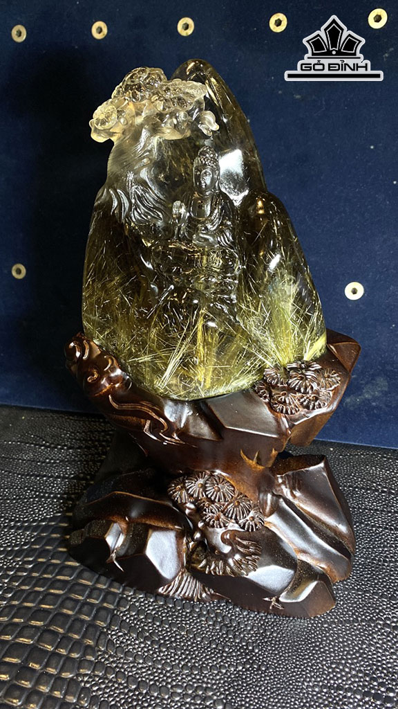 Tác Phẩm Phật Niết Bàn Đá Thạch Anh Tóc Vàng Cao 13,2 Ngang 11,1 Sâu 6,9 (cm) 0,9kg