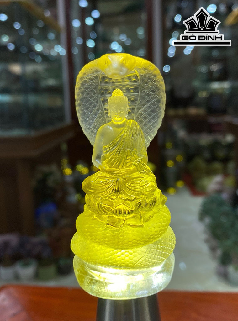 Tác Phẩm Phật Thích Ca Đá Thạch Anh Vàng Cao 9 Ngang 4 Sâu 3 (cm)