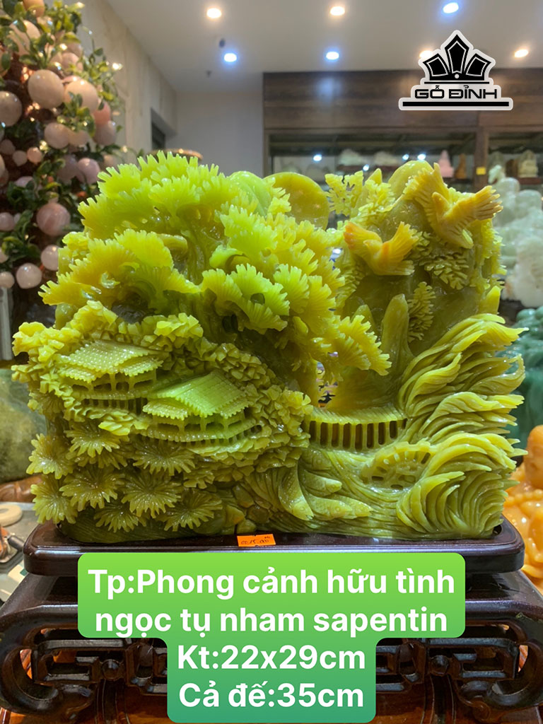 Tác Phẩm Phong Cảnh Hữu Tình Đá Serpentine Cao 22 Ngang 29 (cm)