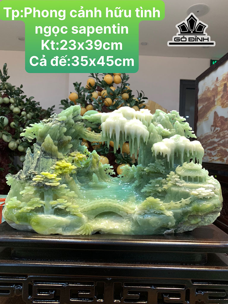 Tác Phẩm Phong Cảnh Hữu Tình Đá Serpentine Cao 35 Ngang 45 Riêng Đá Cao 23 Ngang 39 (cm)