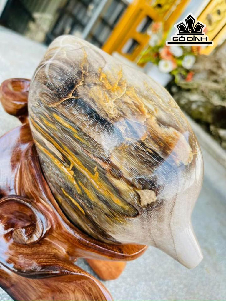 Tác Phẩm Quả Đào Trường Thọ Gỗ Hóa Thạch Cao 22 Ngang 16 (cm) 2,7kg