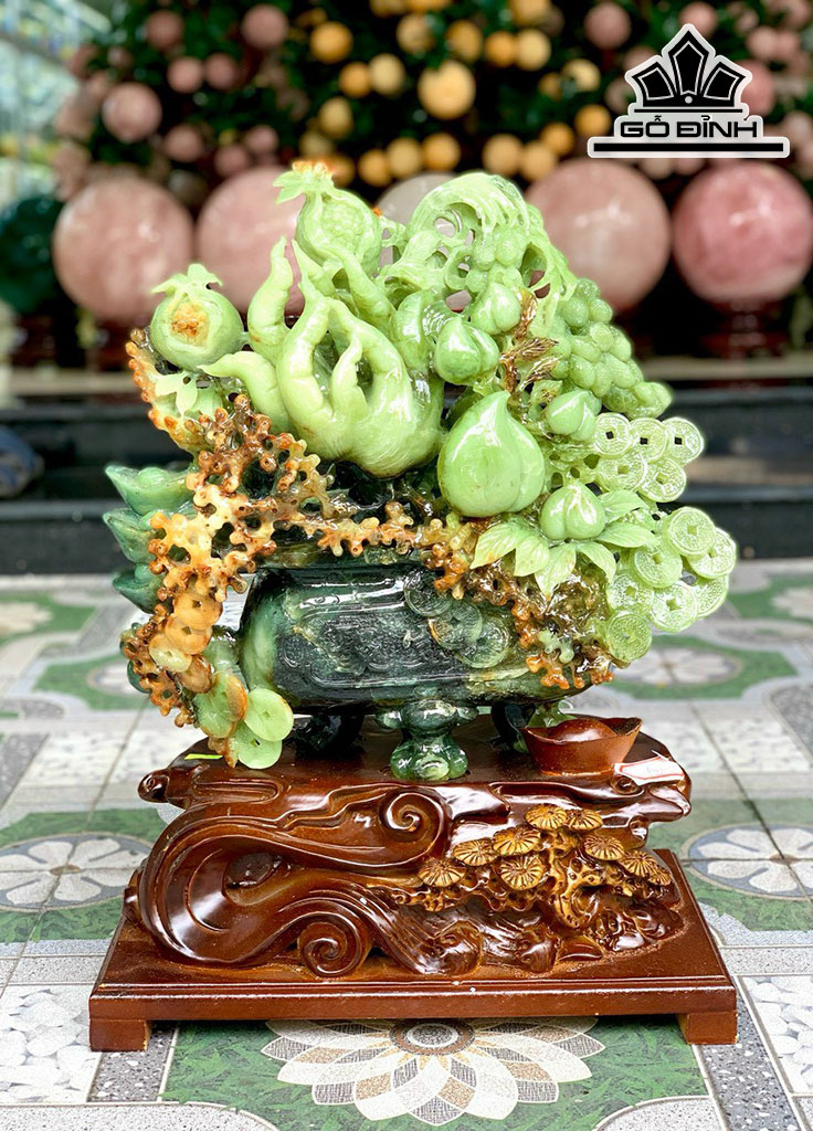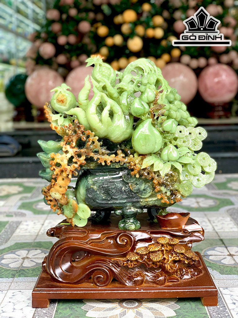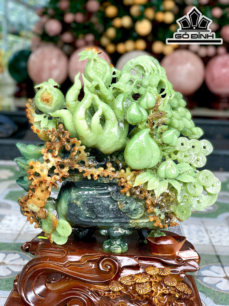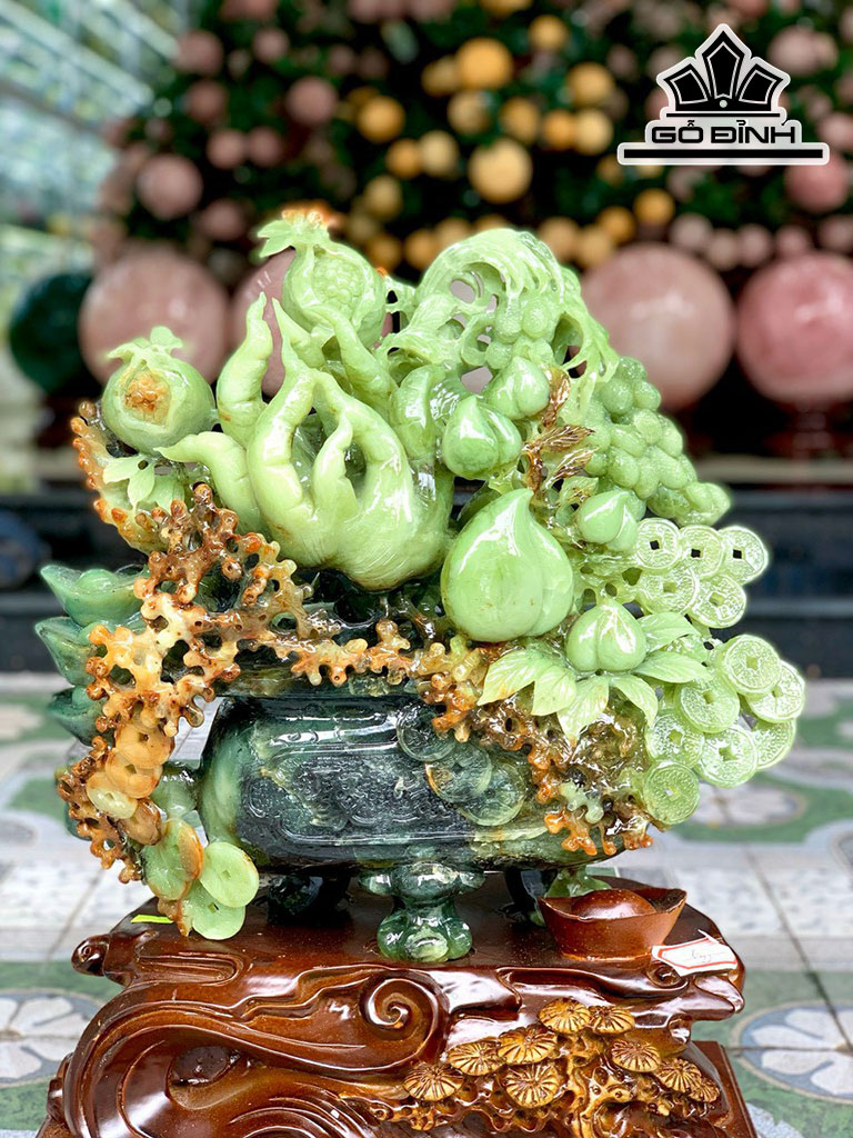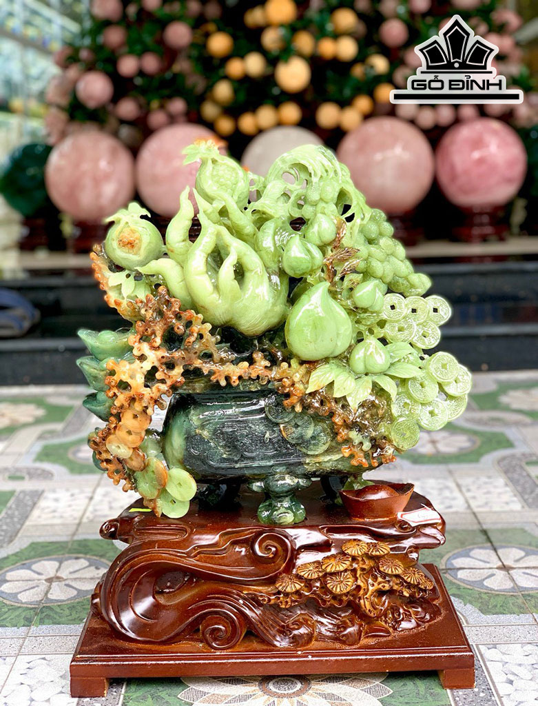 Tác Phẩm Quả Phú Quý Kim Tiền Đá Serpentine Cao 50 Ngang 35 (cm) 13kg Riêng Đá Cao 36 Ngang 36 (cm) 10,3kg